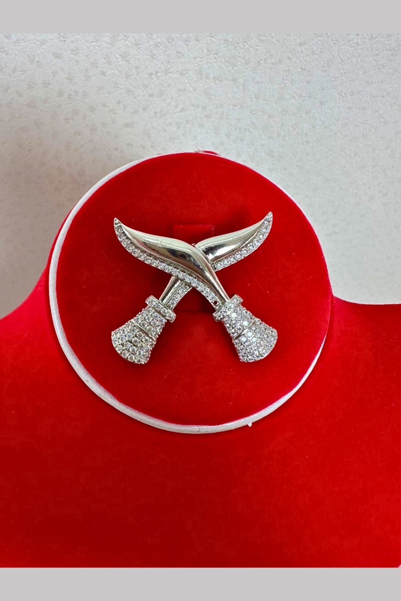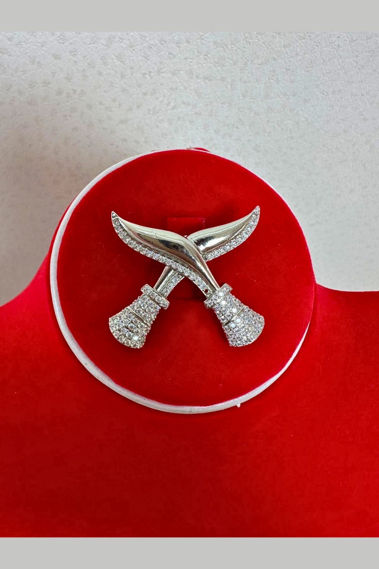 Silver Plated Khukuri Cross Diamond-Studded Brooch