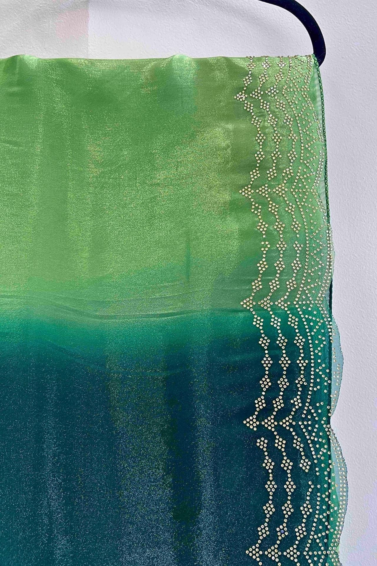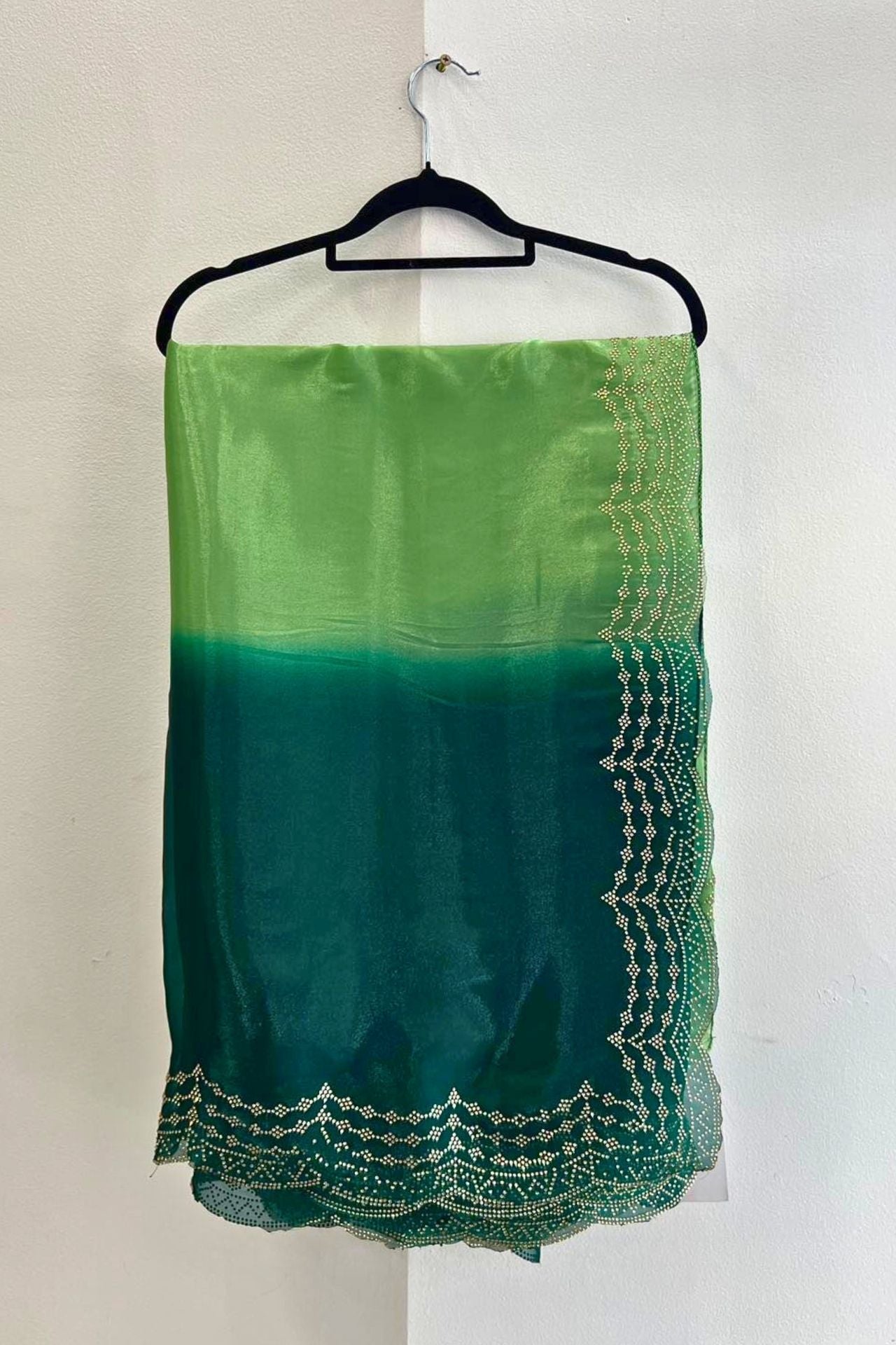 Emerald Ombre FendySilk Saree with Scalloped Stone Border