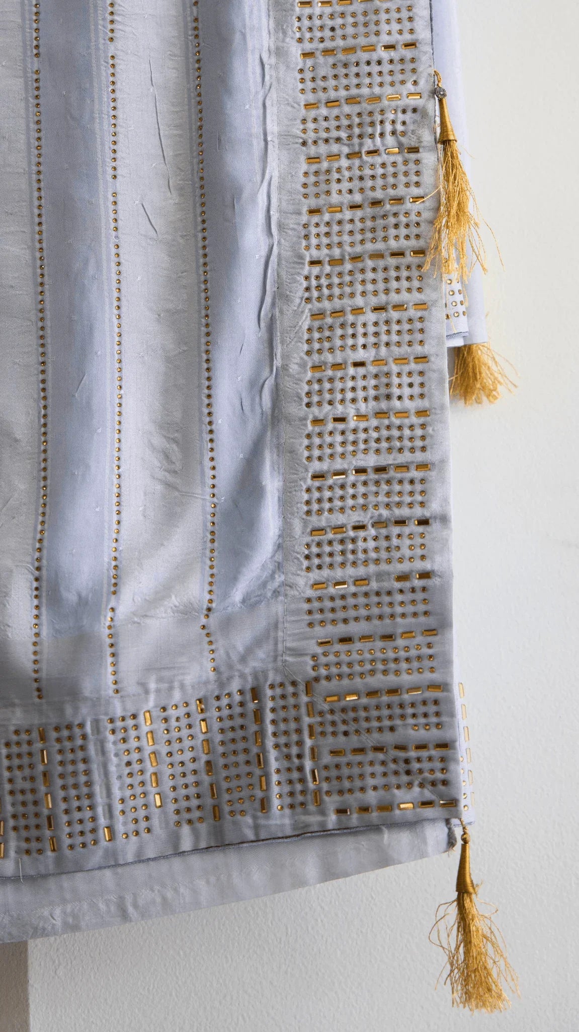 LightGrey Gold Stone Patch Work Linen Saree