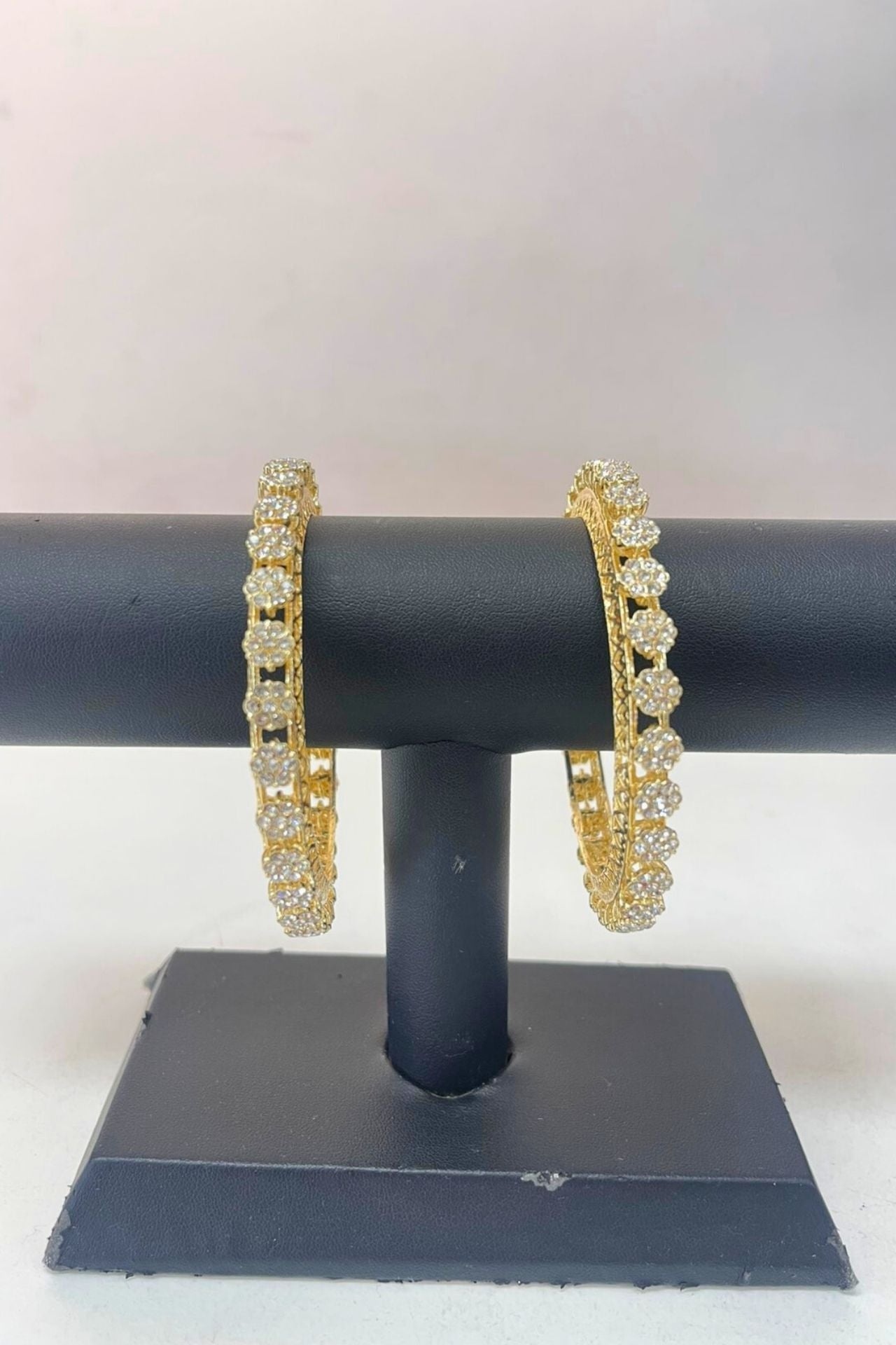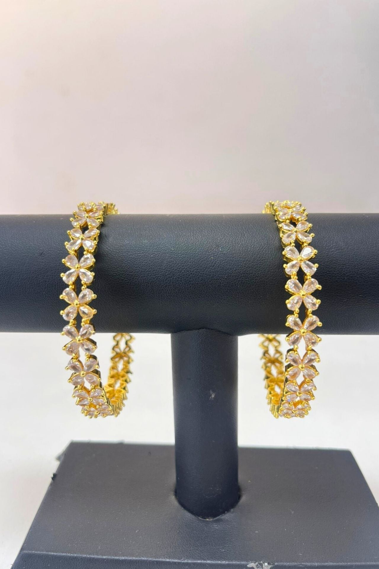 Bangles Gold-Plated American Diamond Floral Set