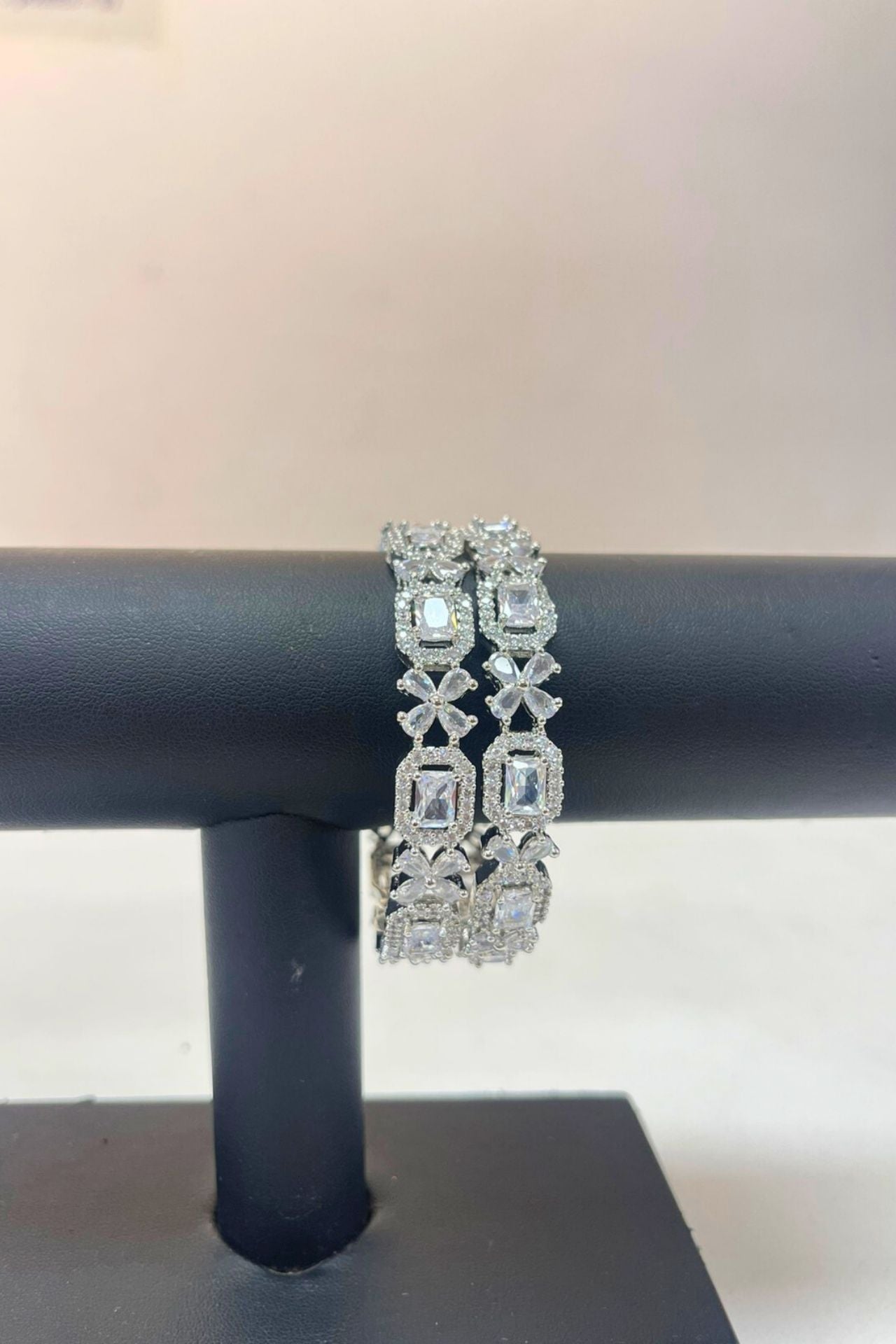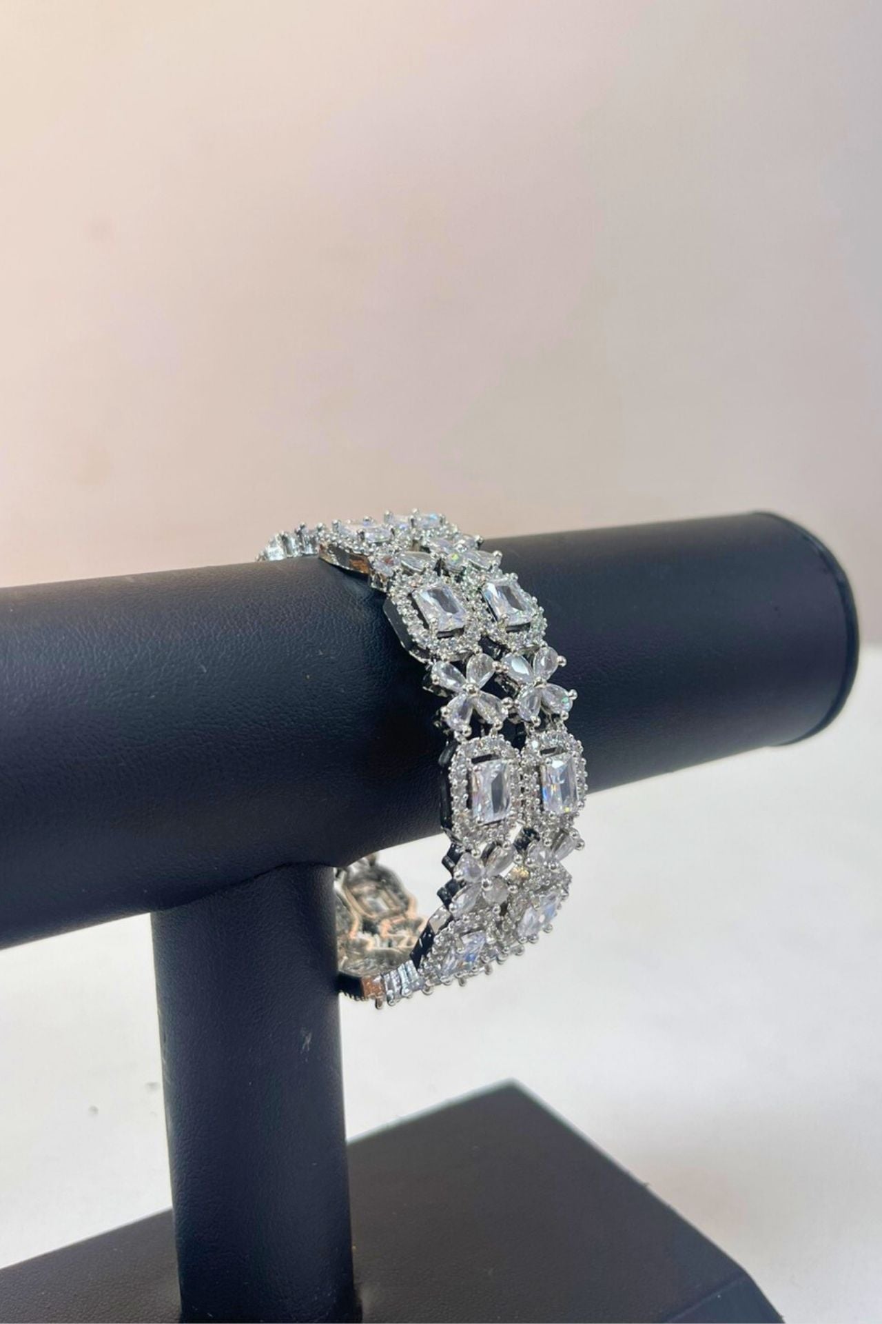 Bangles American Diamond Geometric Mixed-Cut Rhodium
