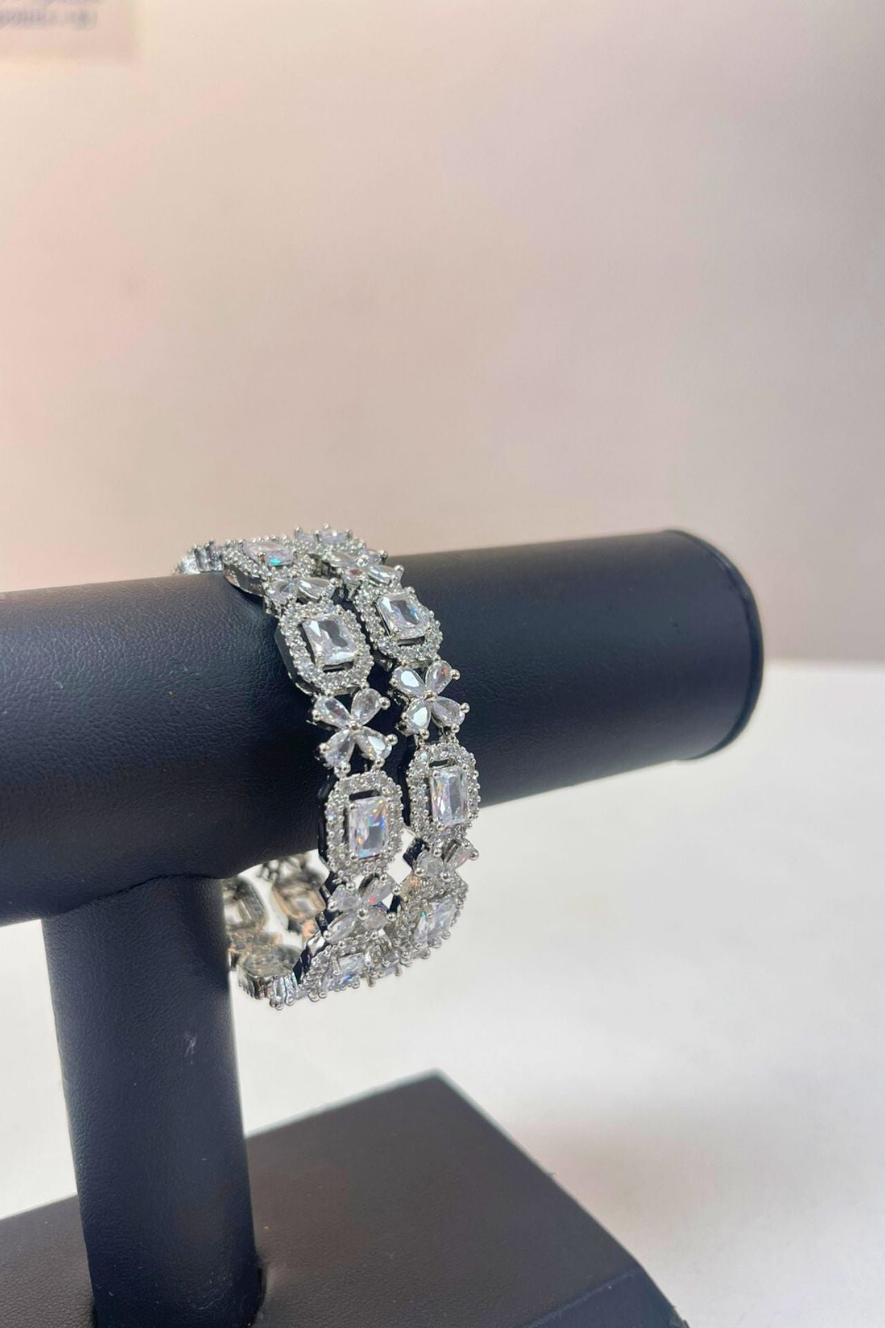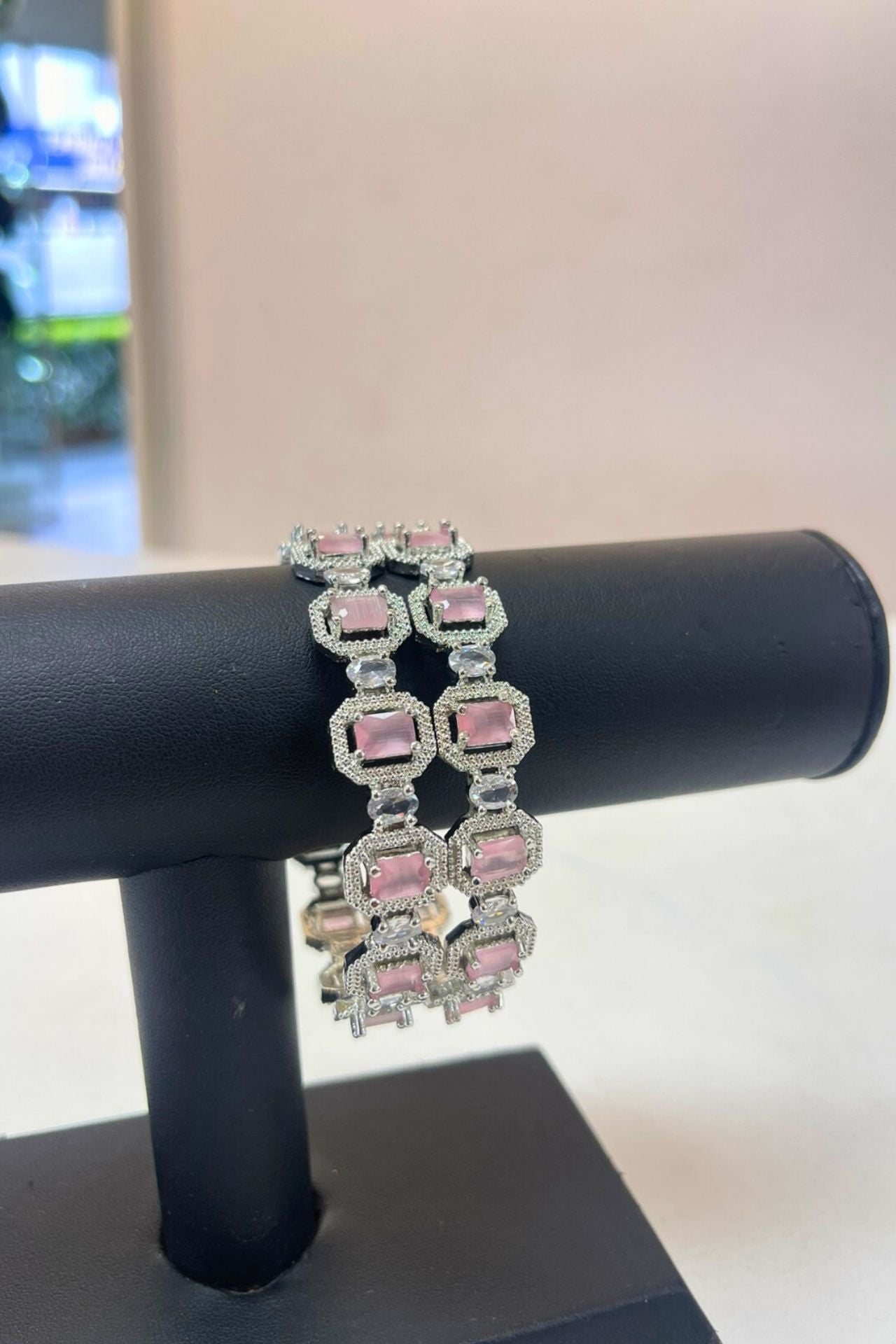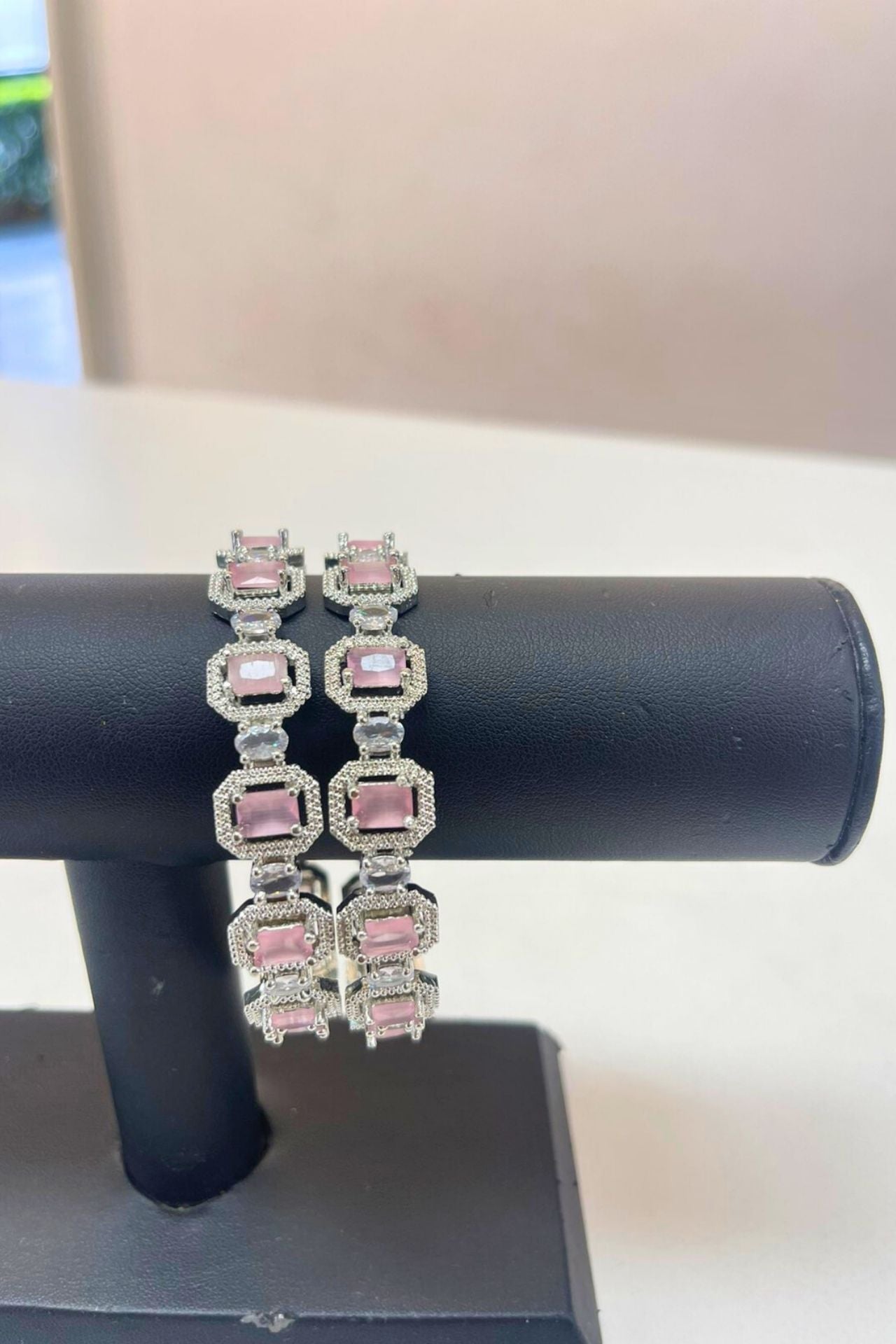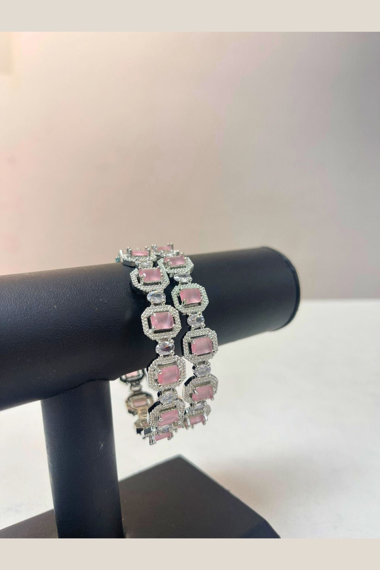Bangles Pink American Diamond Rectangular Rhodium