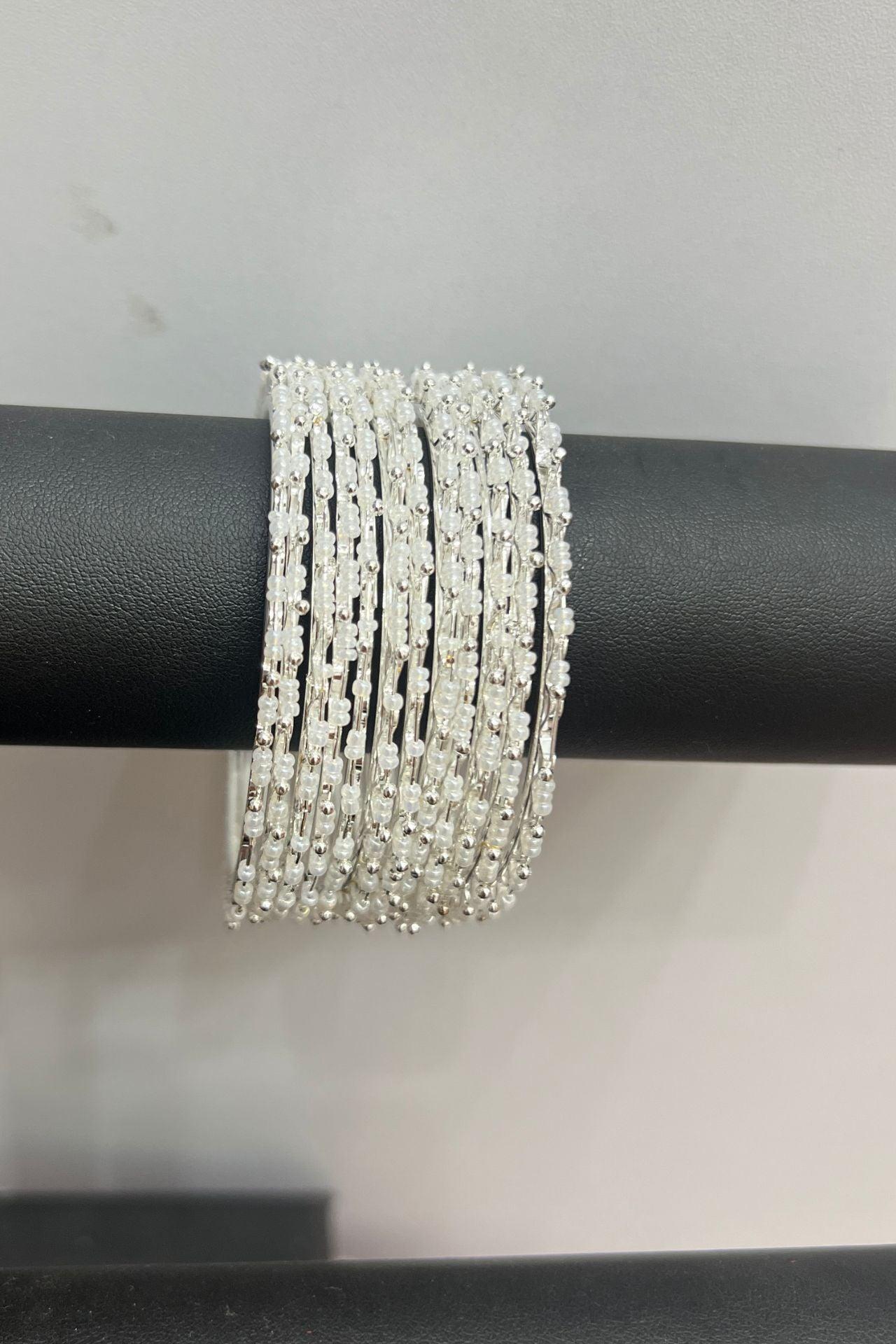 Silver Alloy With White Pearl Bangles