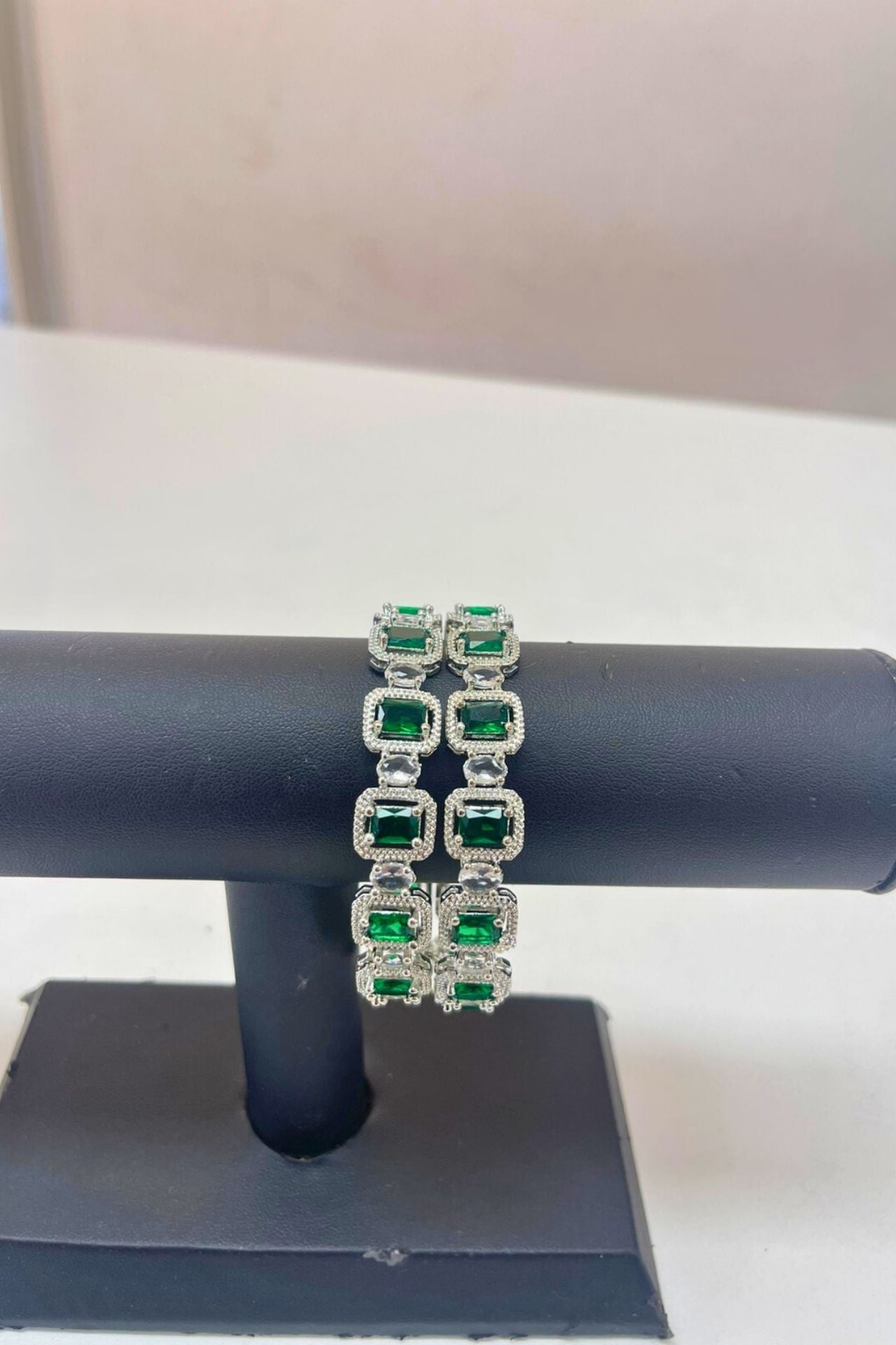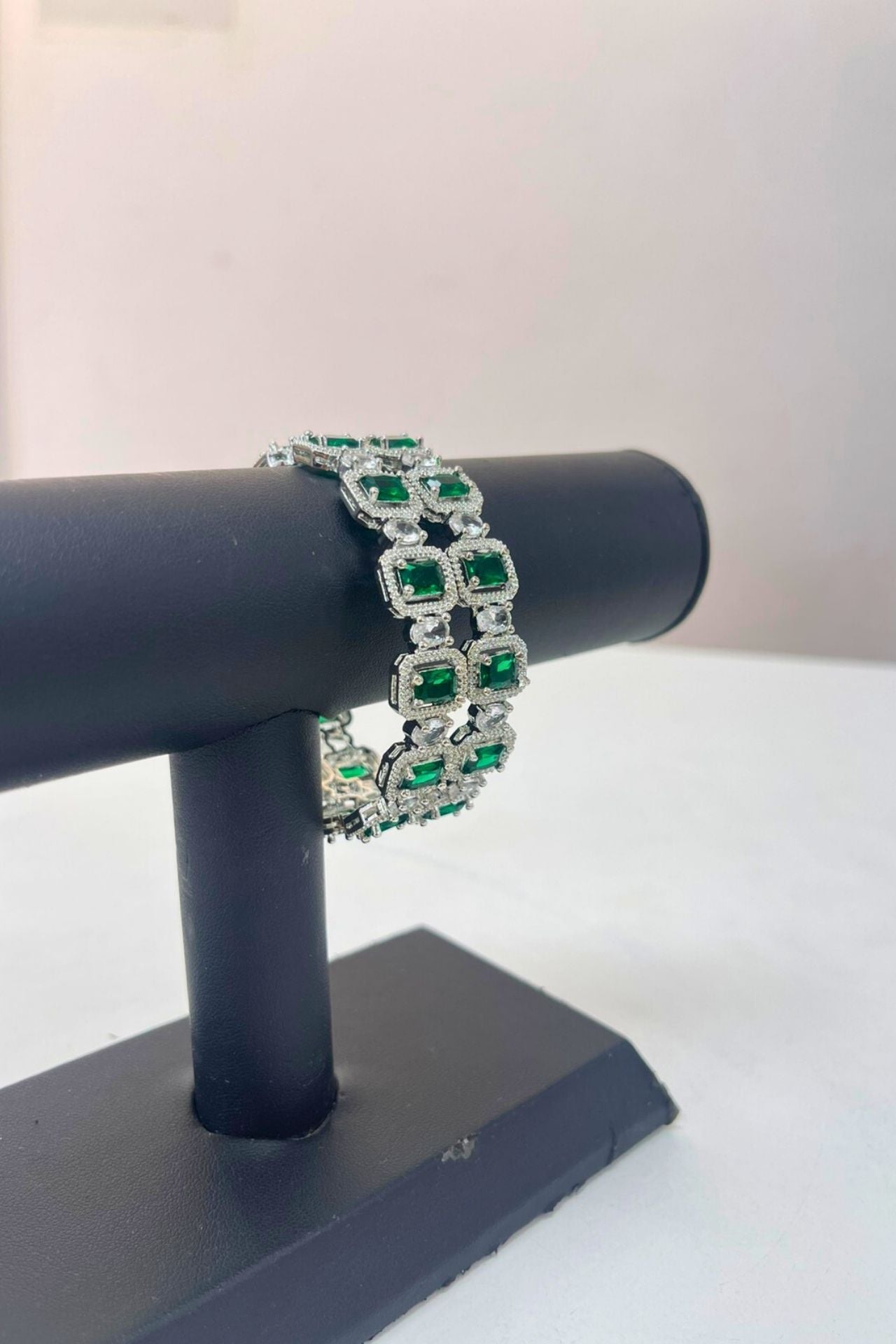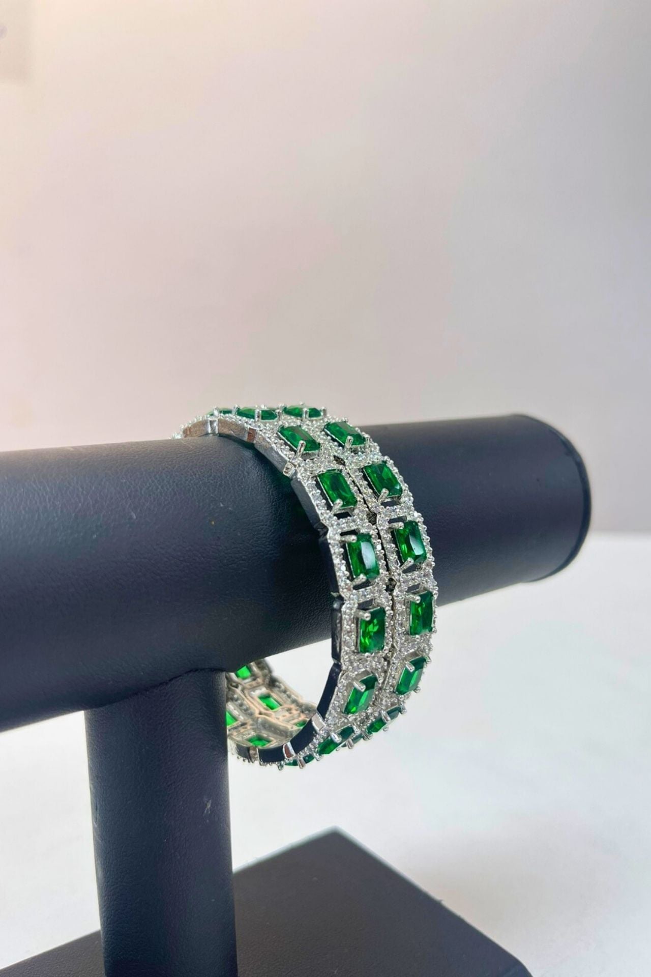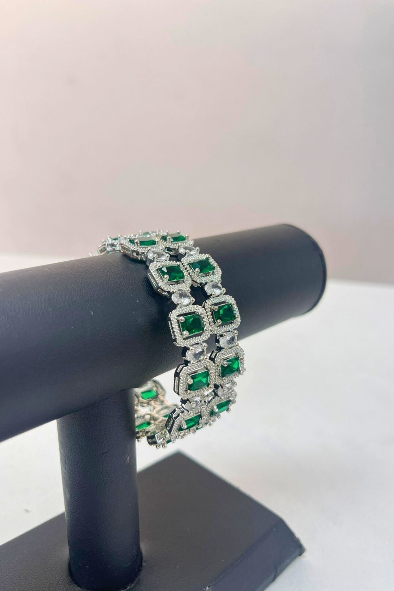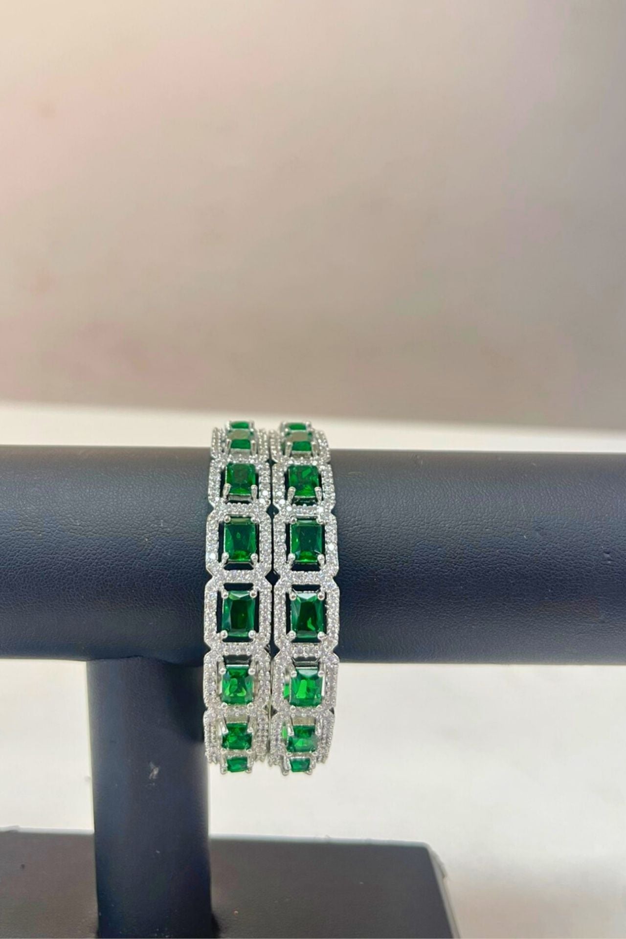 Bangles Emerald Green American Diamond Square Set