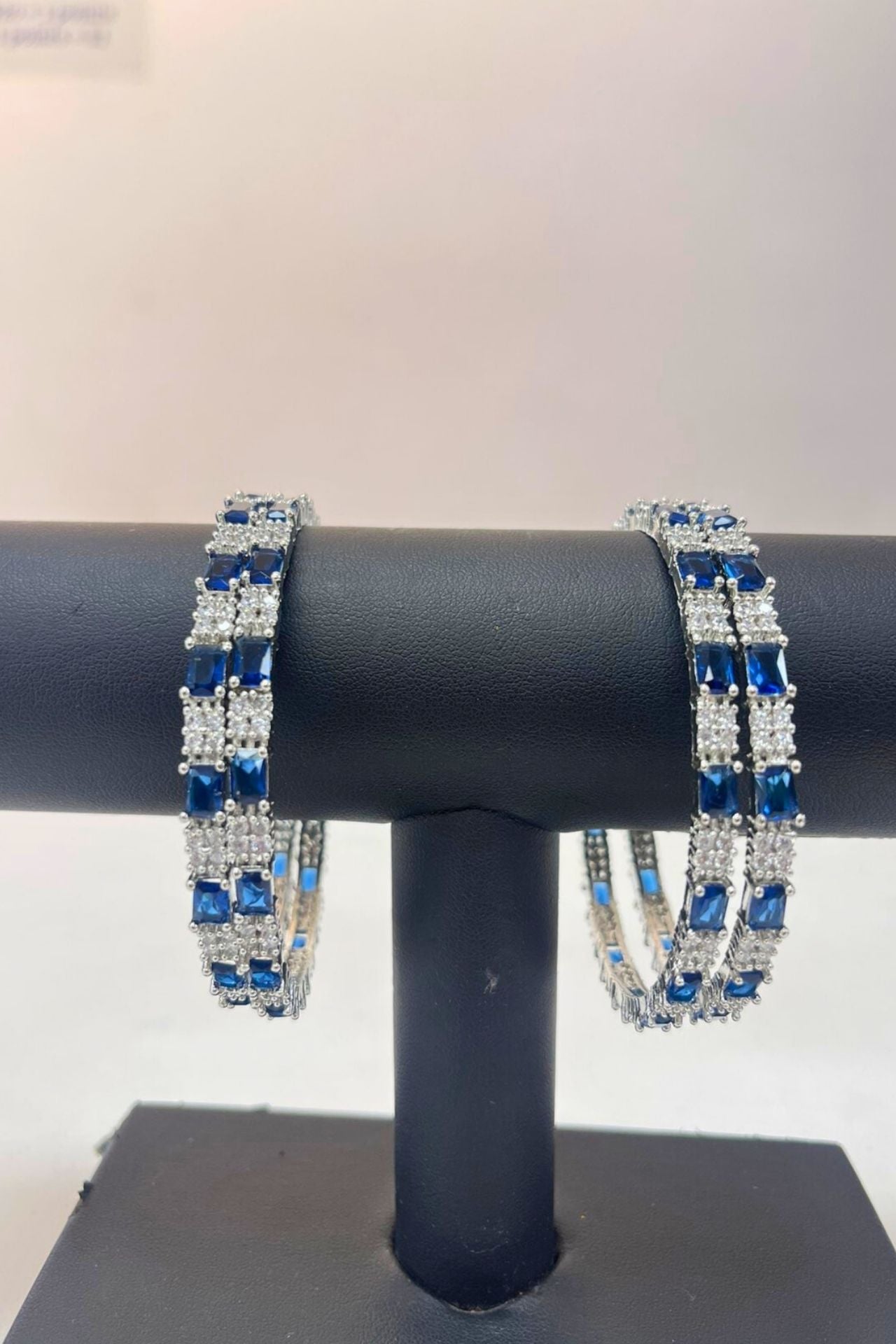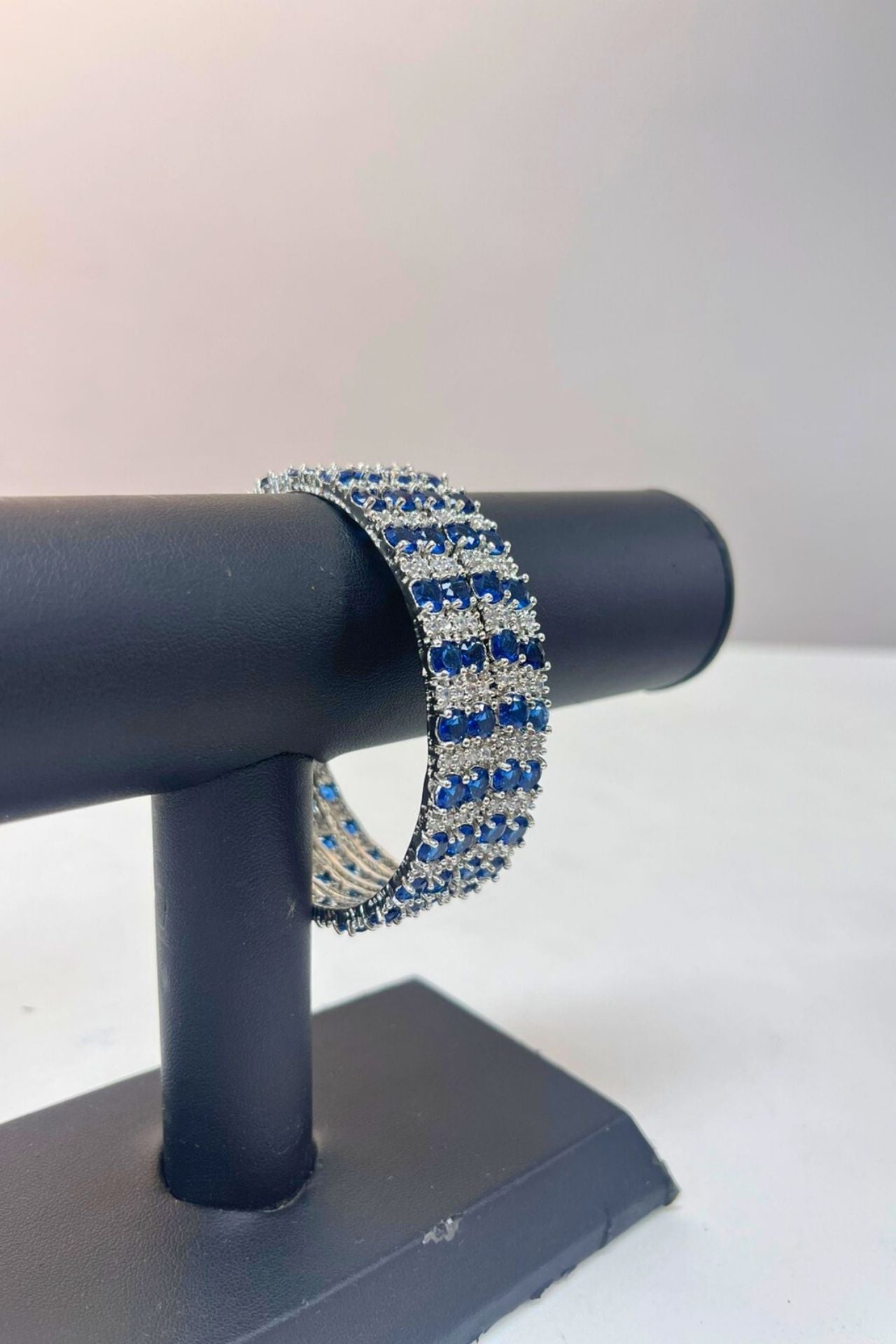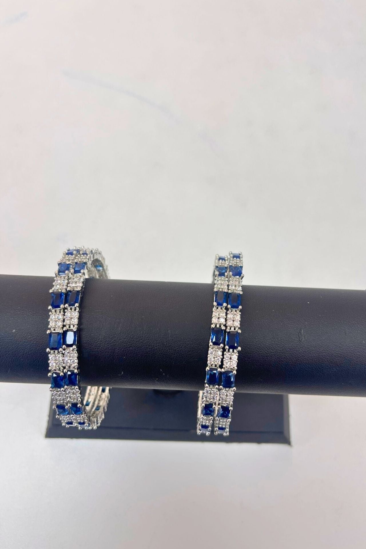 Bangle Set Sapphire Blue American Diamond Rhodium