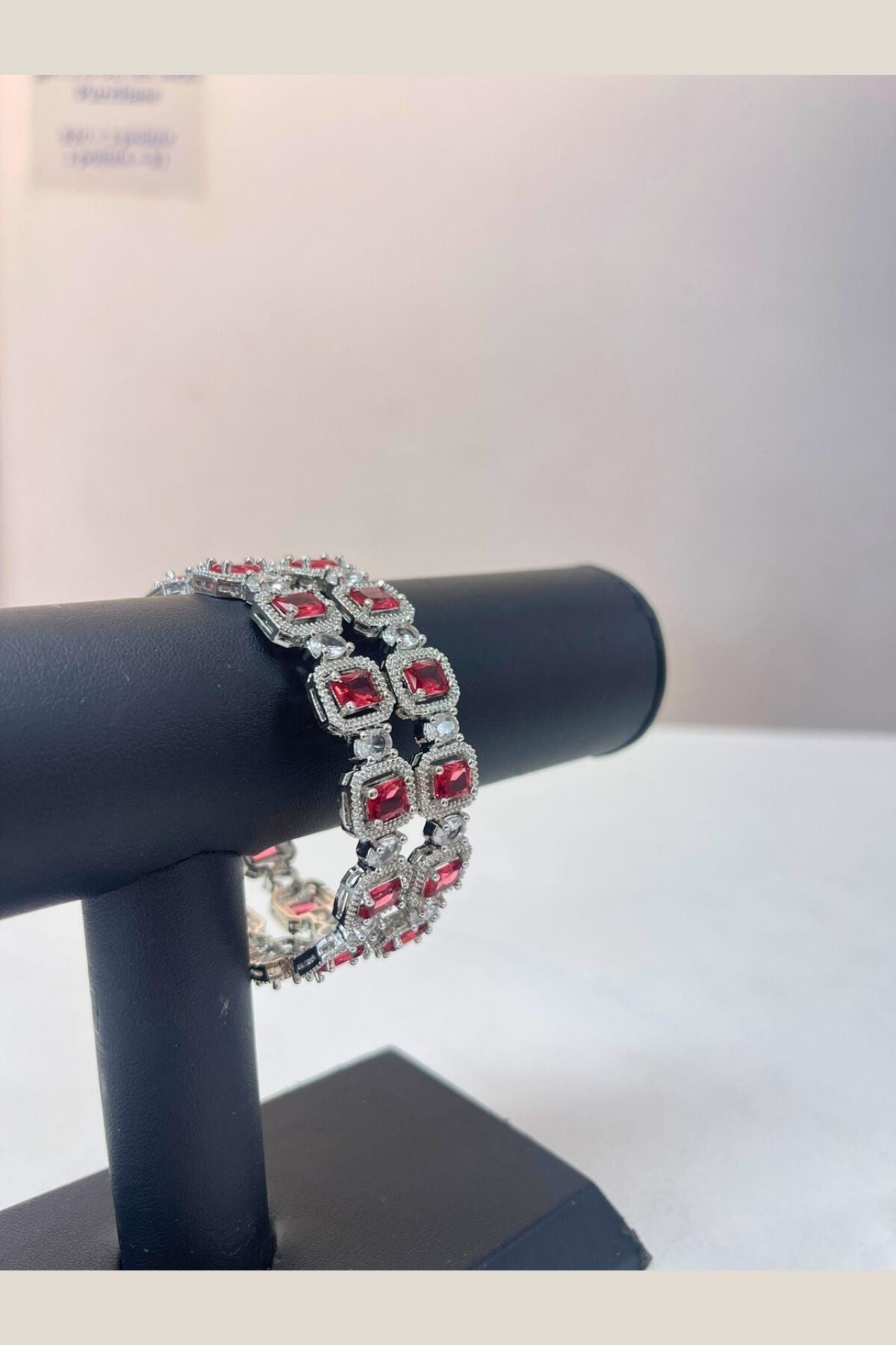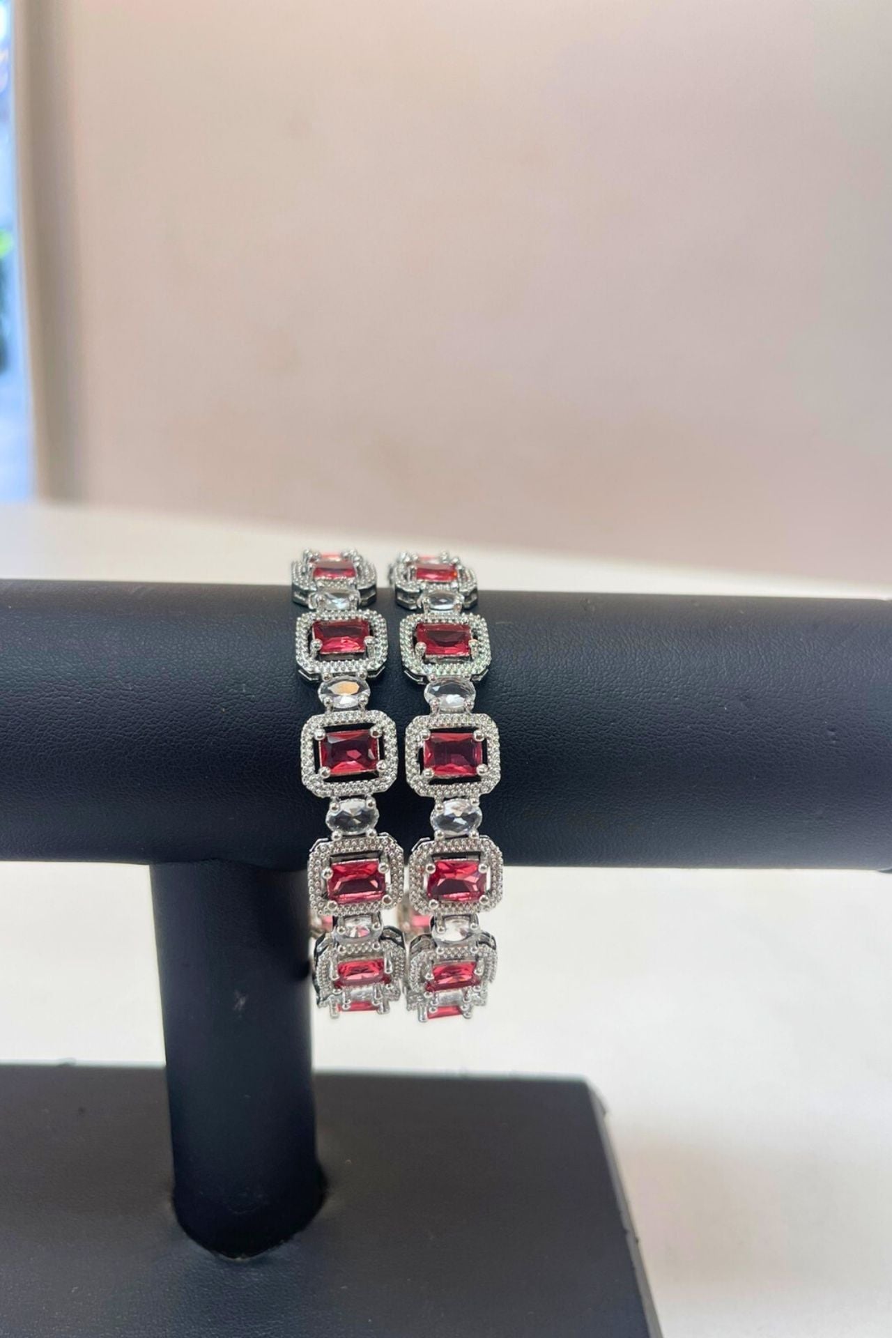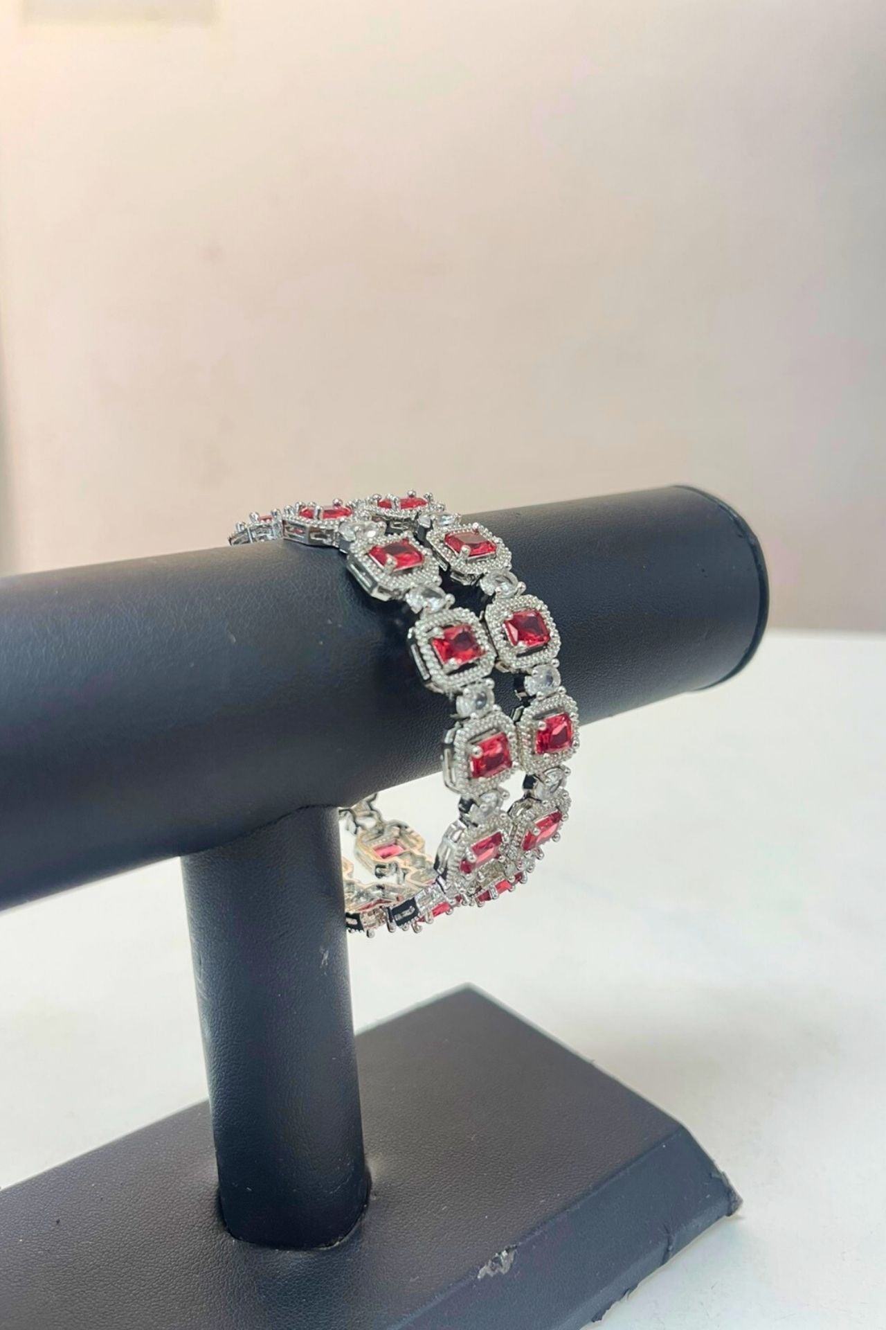 Bangles Red American Diamond Rectangular Rhodium