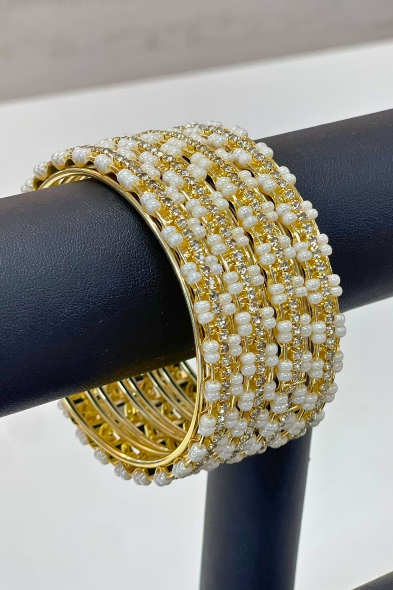Bangle Set With Grey Gold Beaded Rhinestone