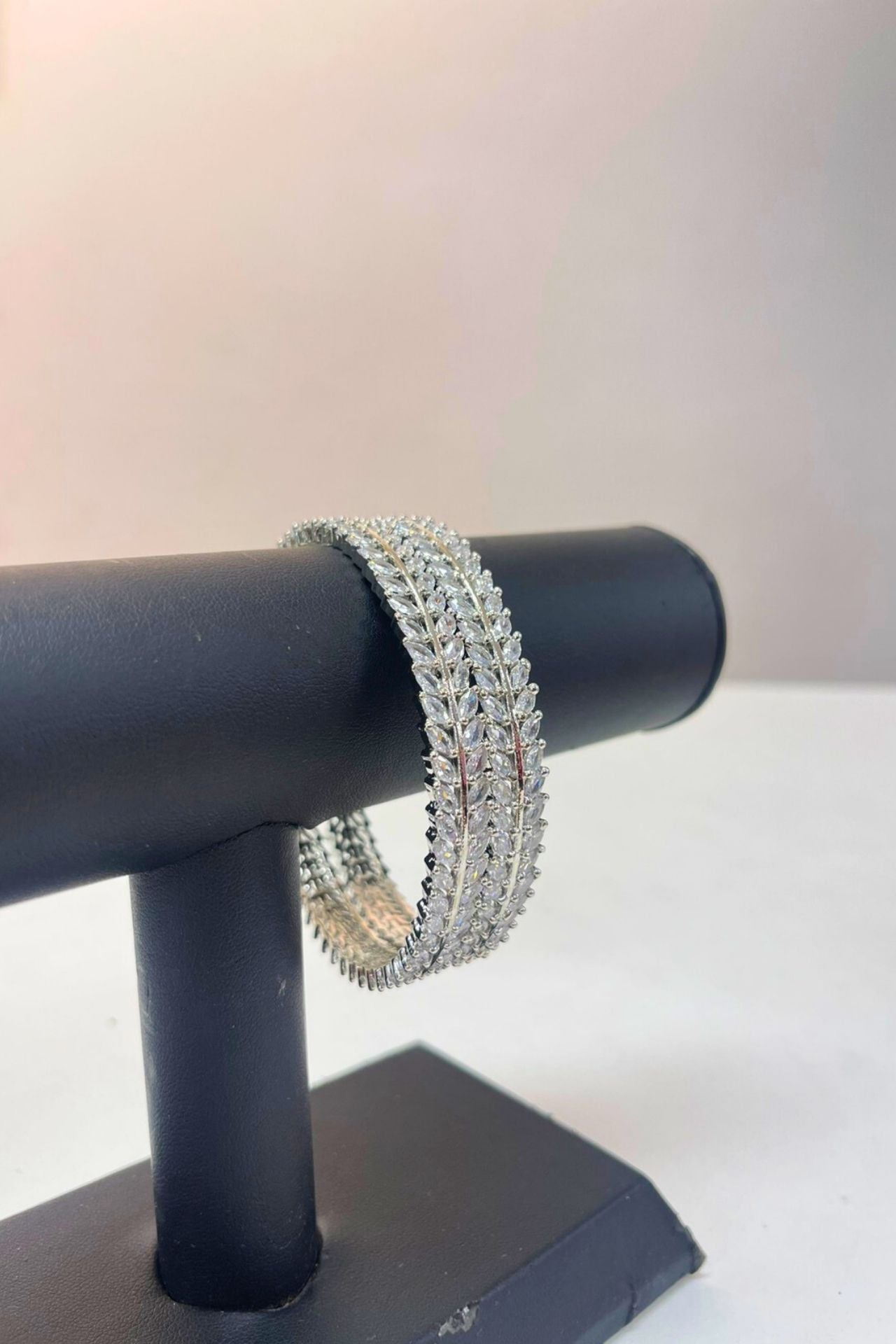 Bangles American Diamond Leaf Branch Rhodium Set