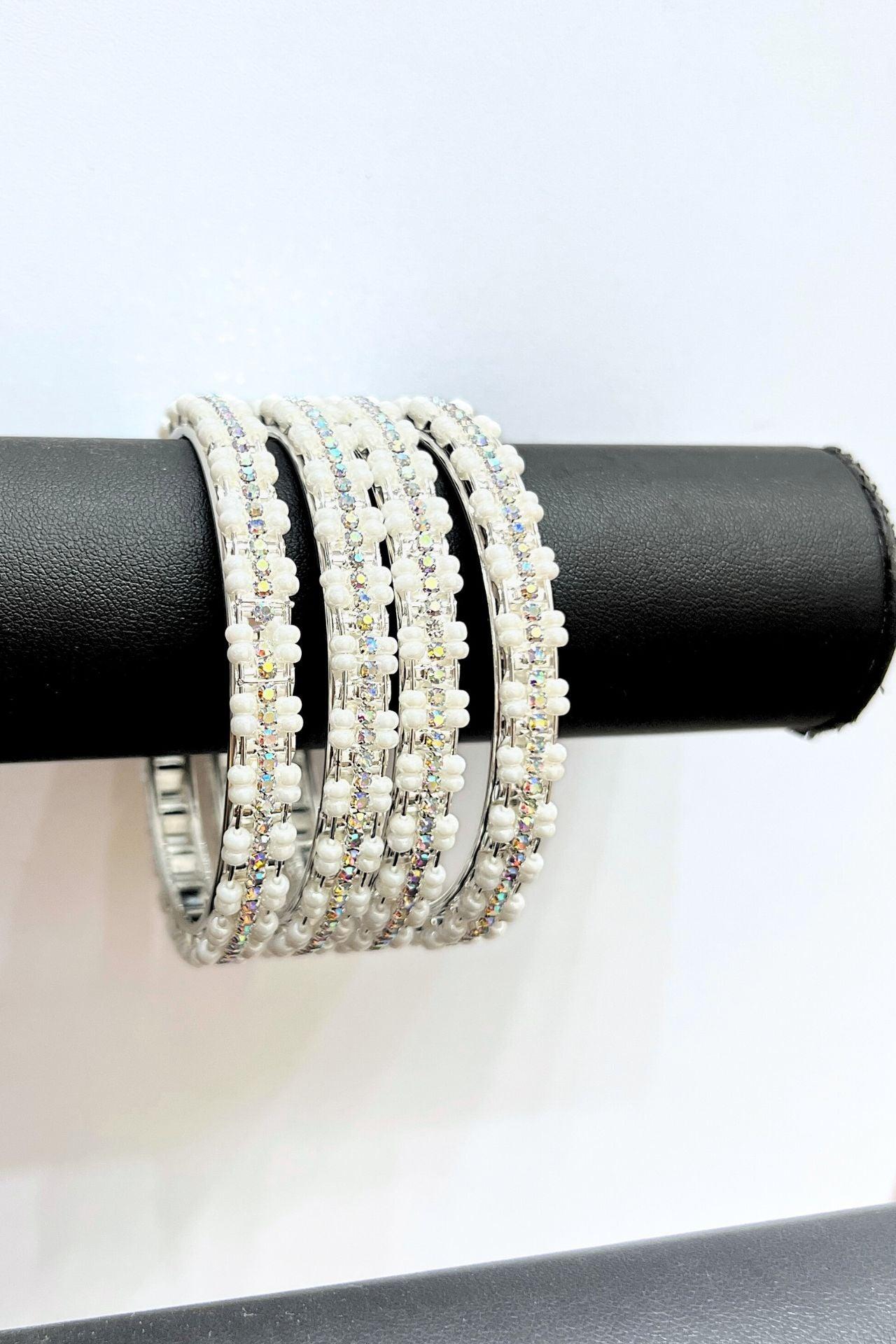 AD Bangles Set with Pearl And White Stone