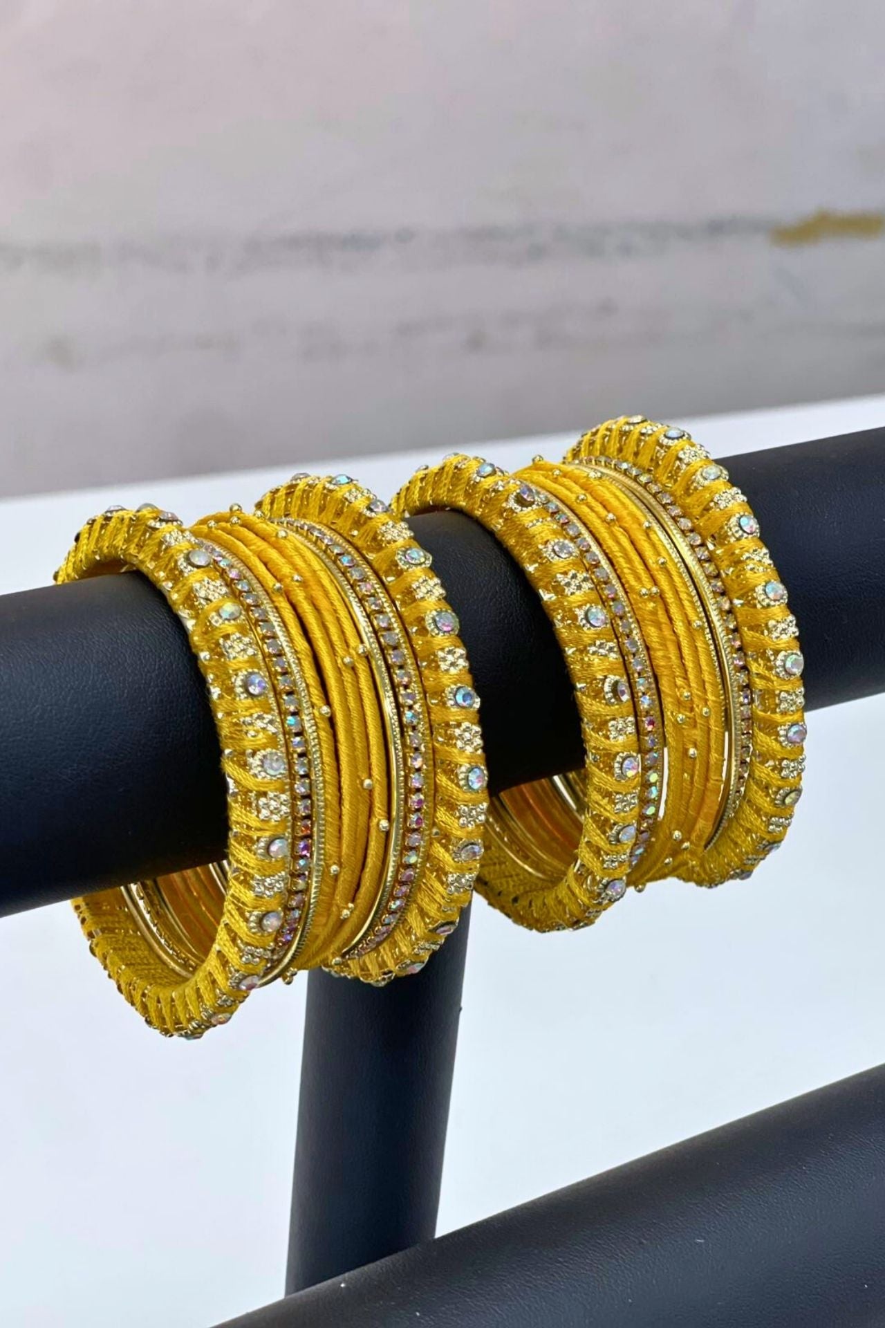 Yellow Bangles Set With Silk Thread Work