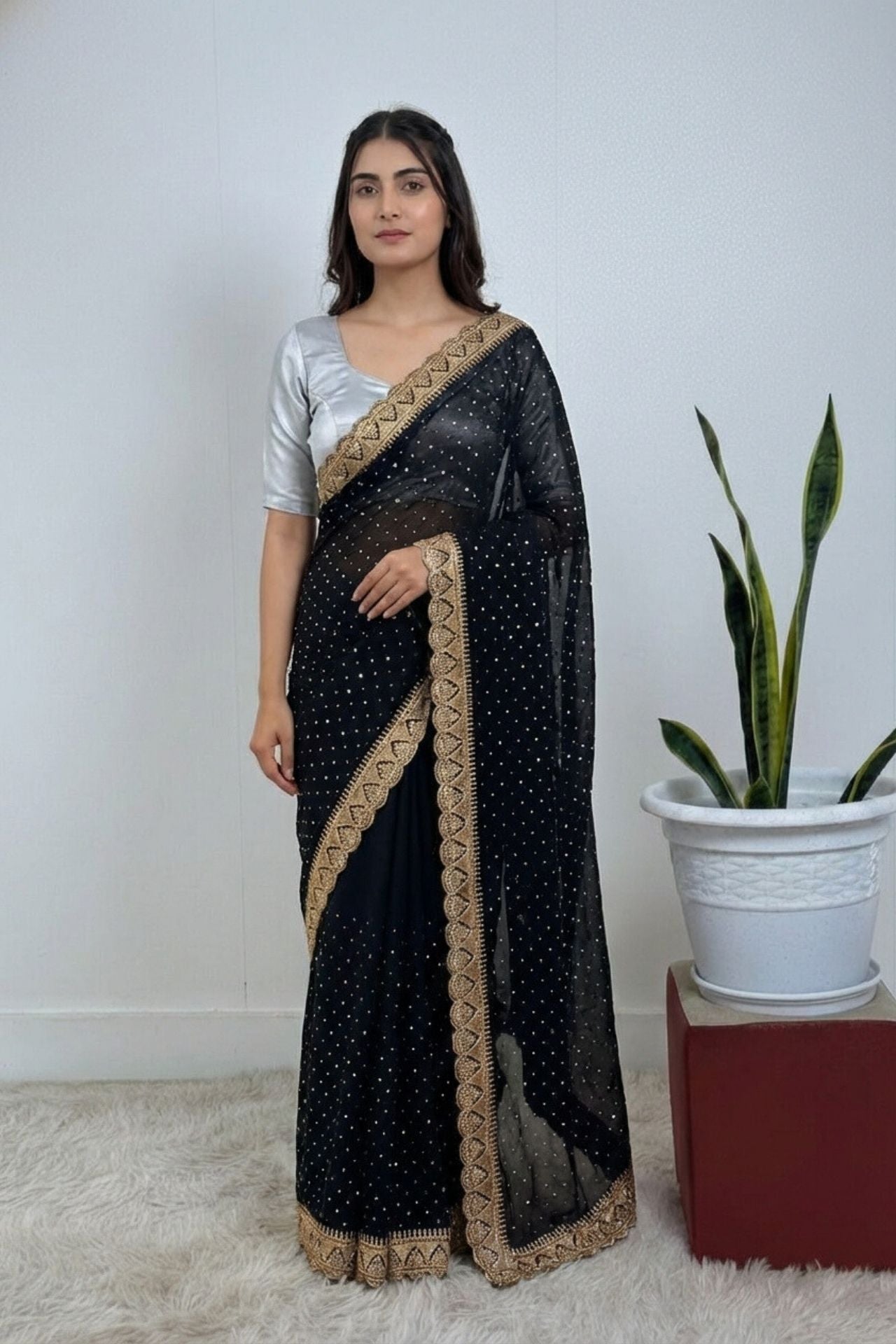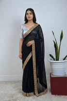 Black Soft Silk Golden Zari Work Saree