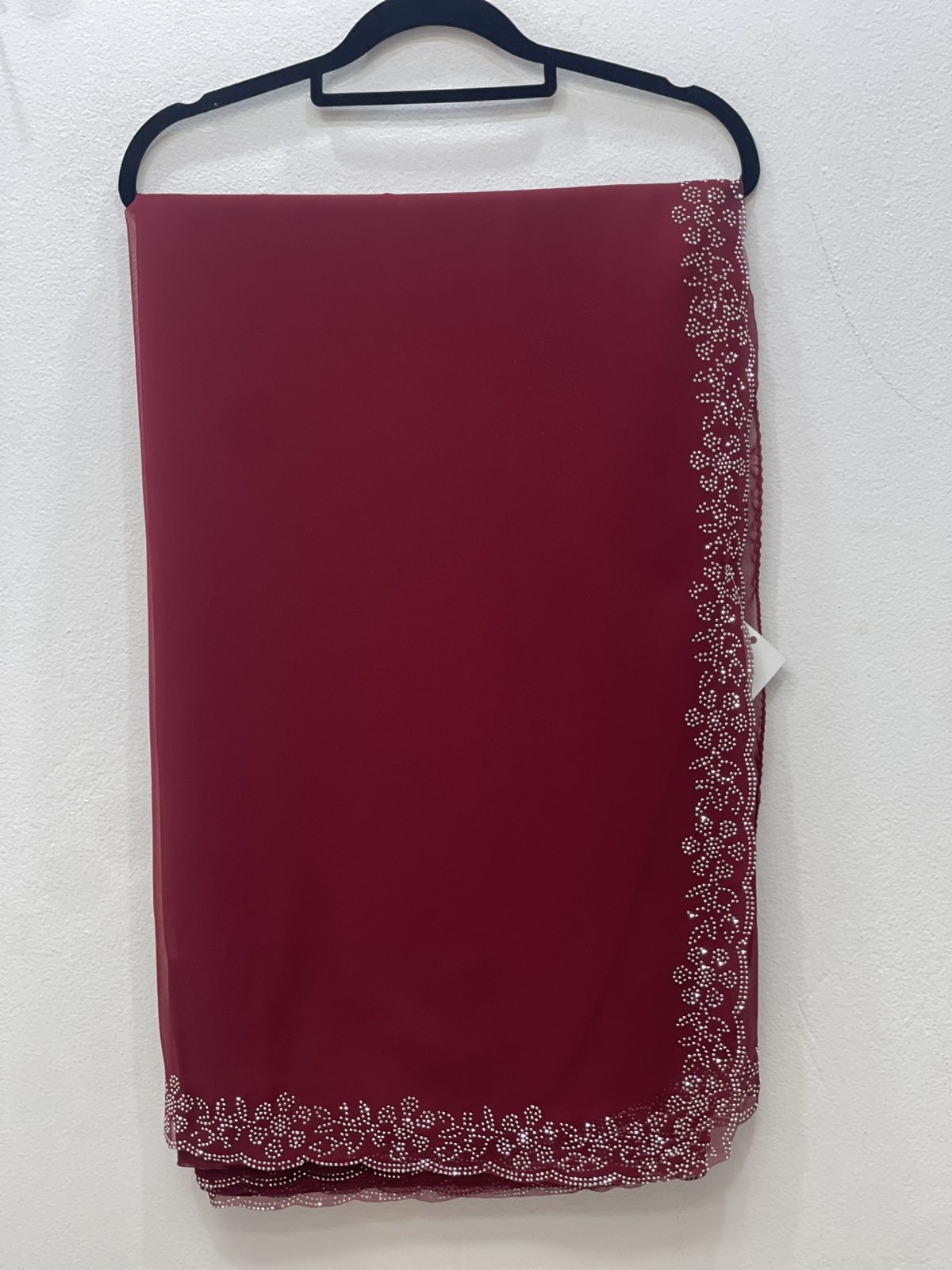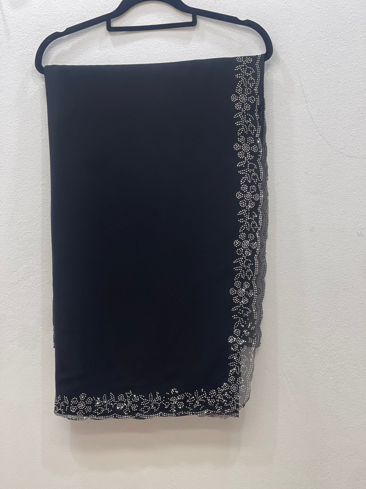 Chiffon Saree With Silver Rhinestone Border