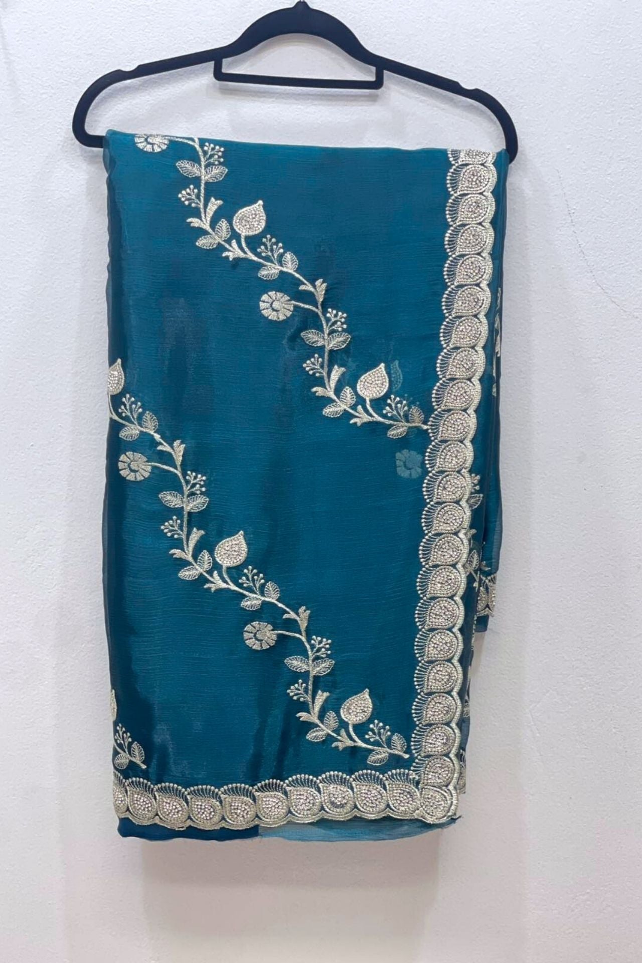 - Embroidered Silk Blend Saree combines traditional craftsmanship with modern sophistication