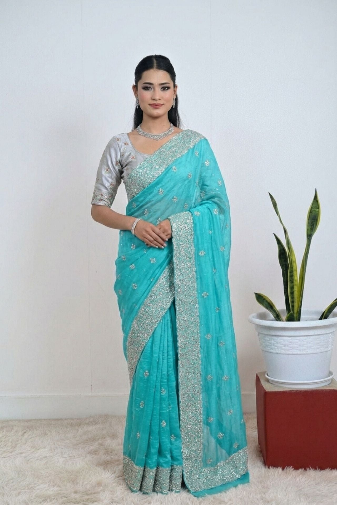 - Saree with Falls And Piko Done