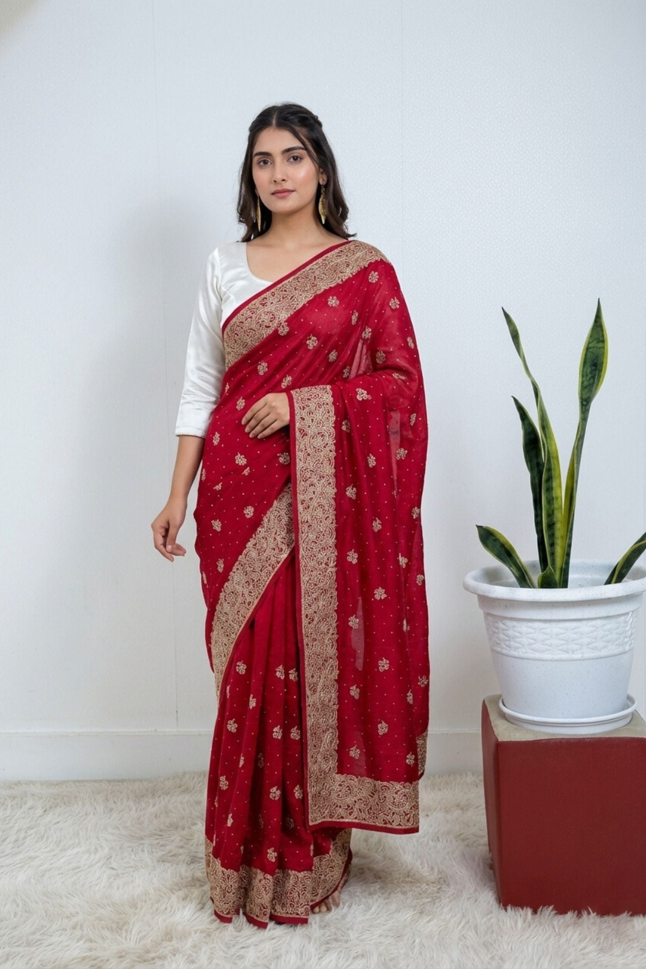 Maroon Heavywork Thread Wor Soft Silk Saree