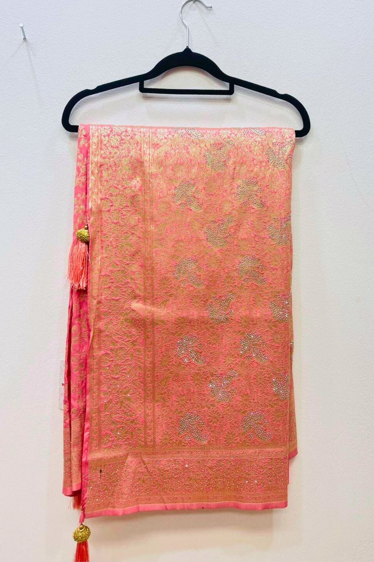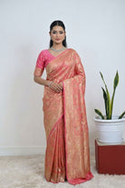 Pink Banarasi Silk Saree With Golden Zari