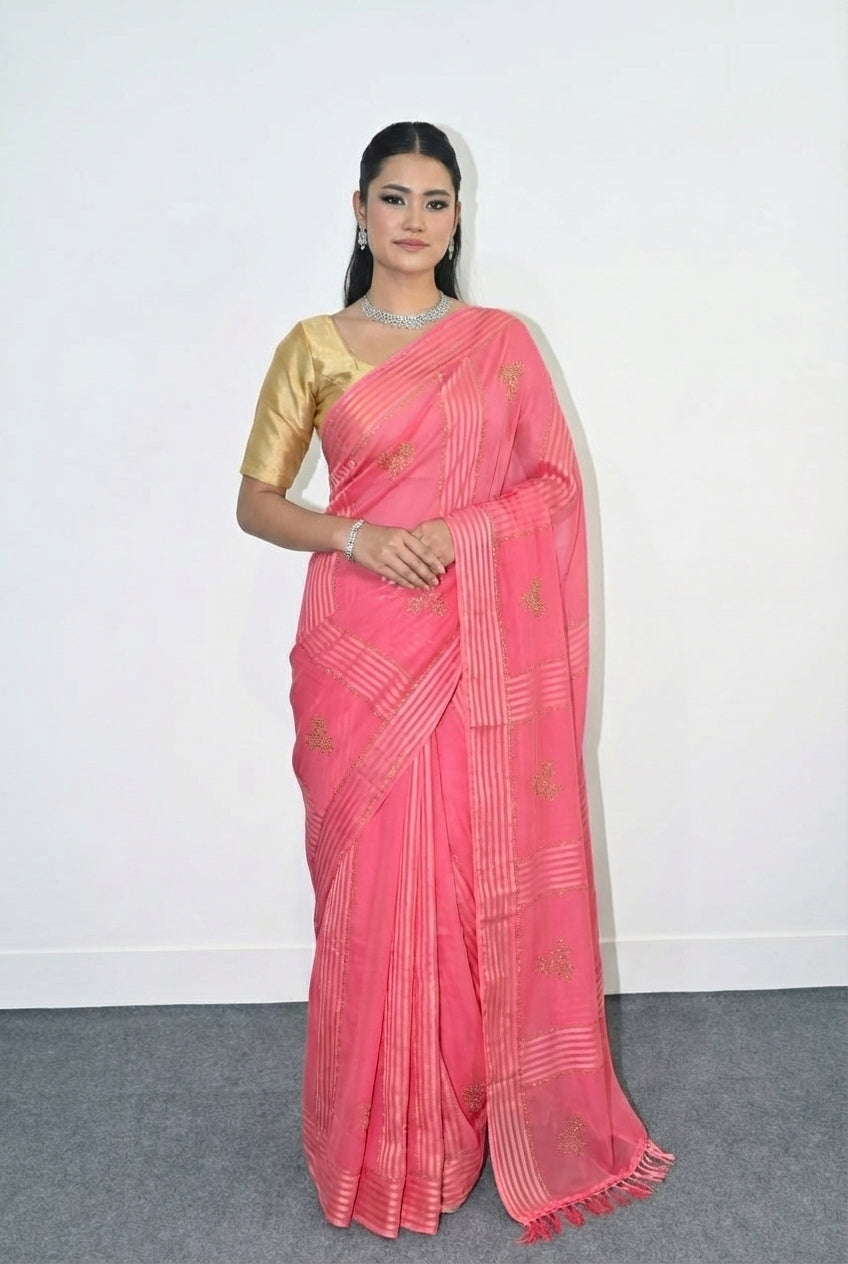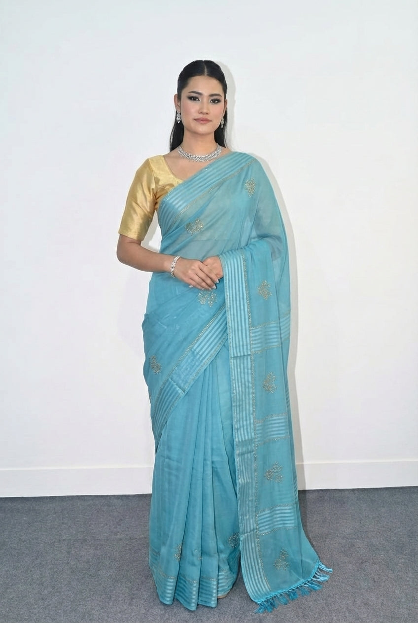 Soft silk Saree With Gold Sitara Work