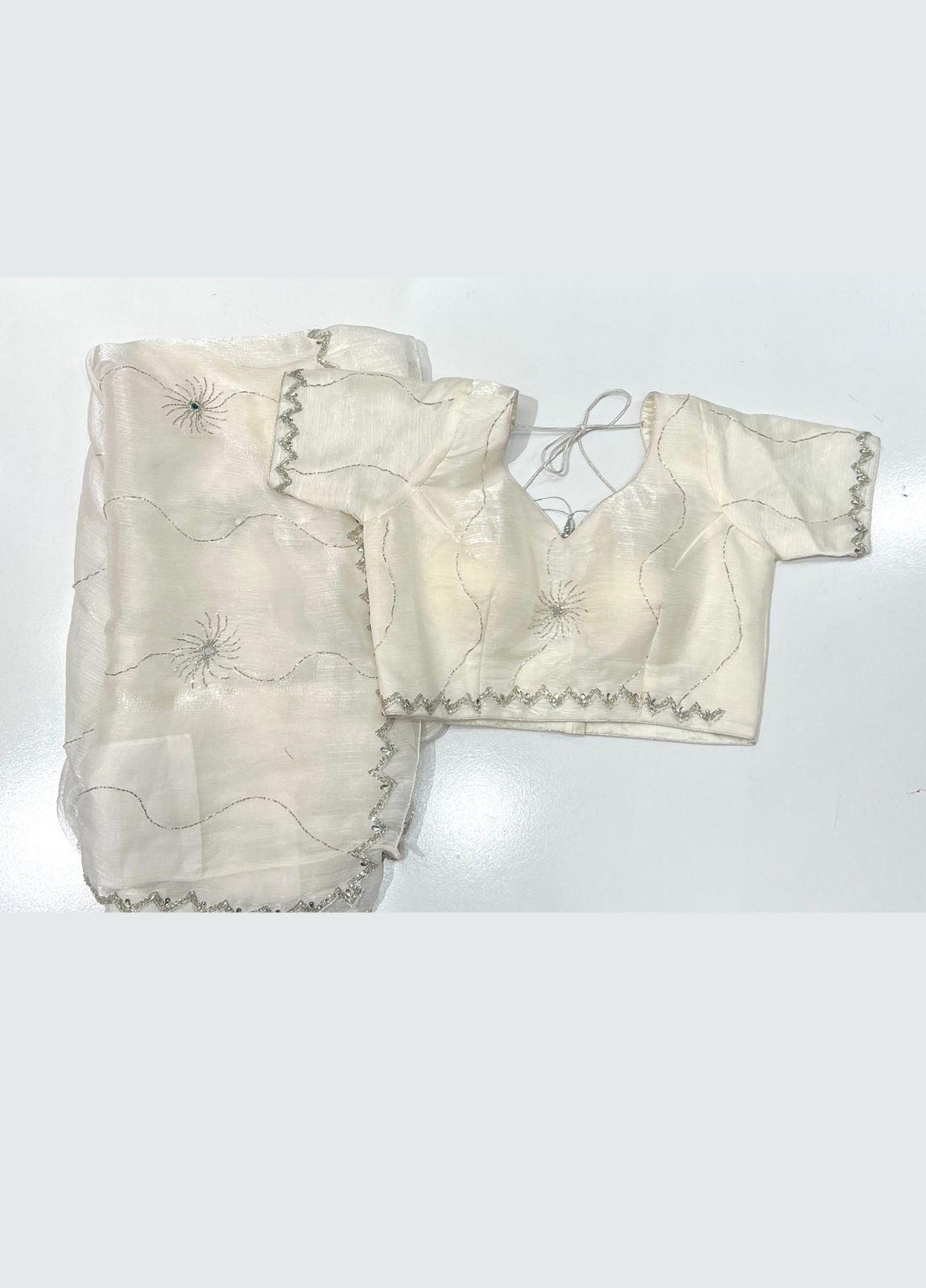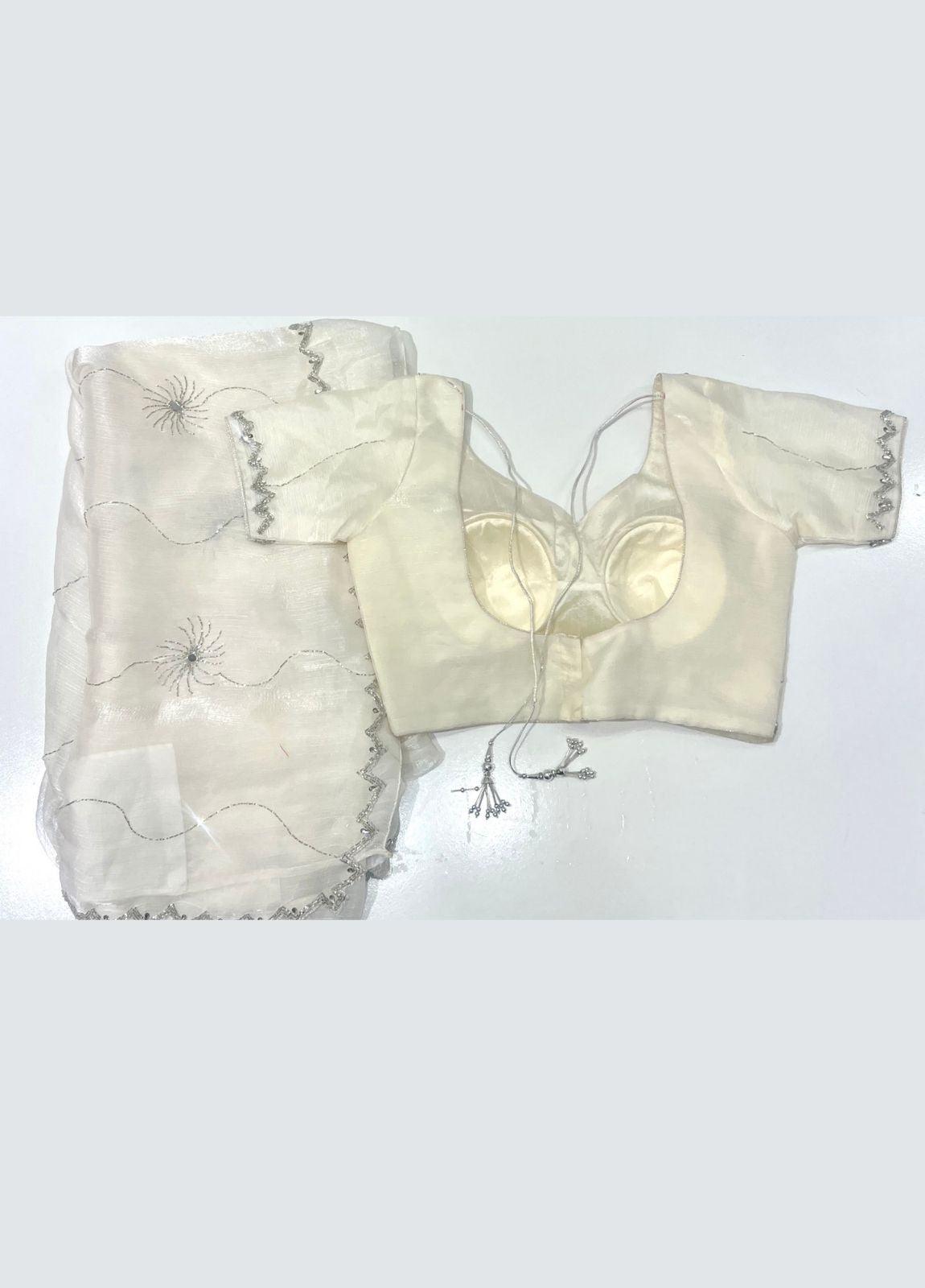 OffWhite Glass Silk Saree And Radymade Blouse Set