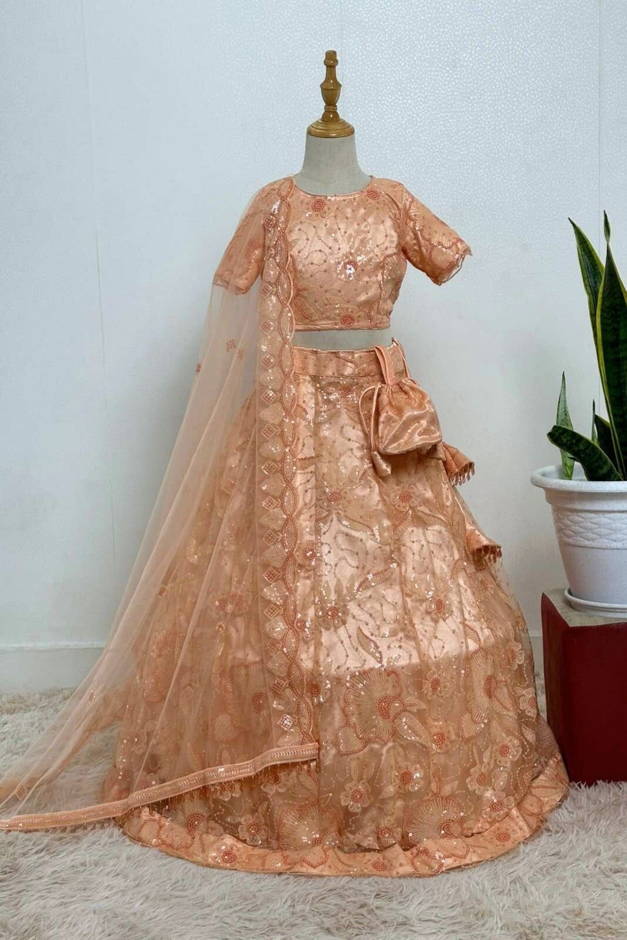 Peach Net Lehenga Choli Set