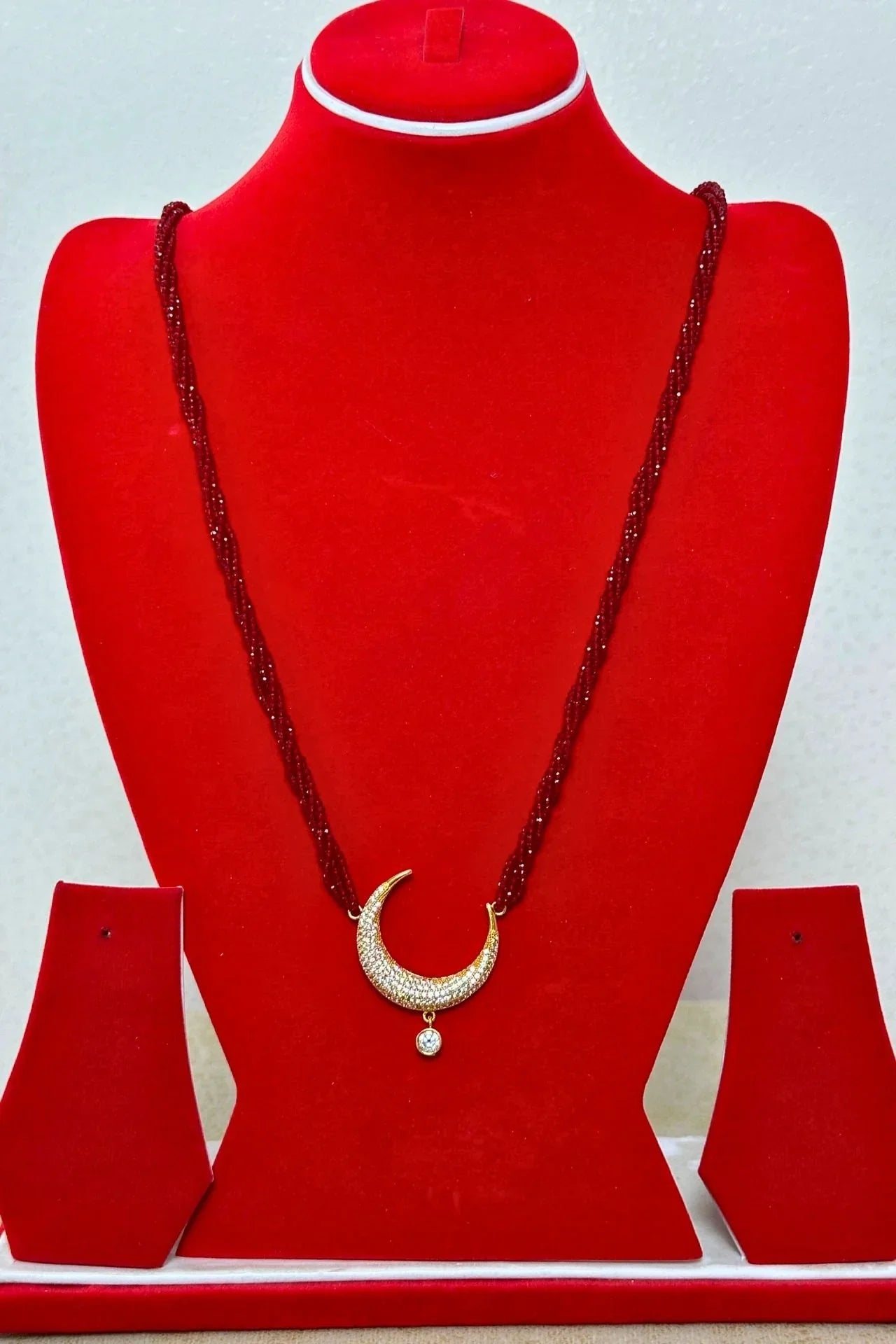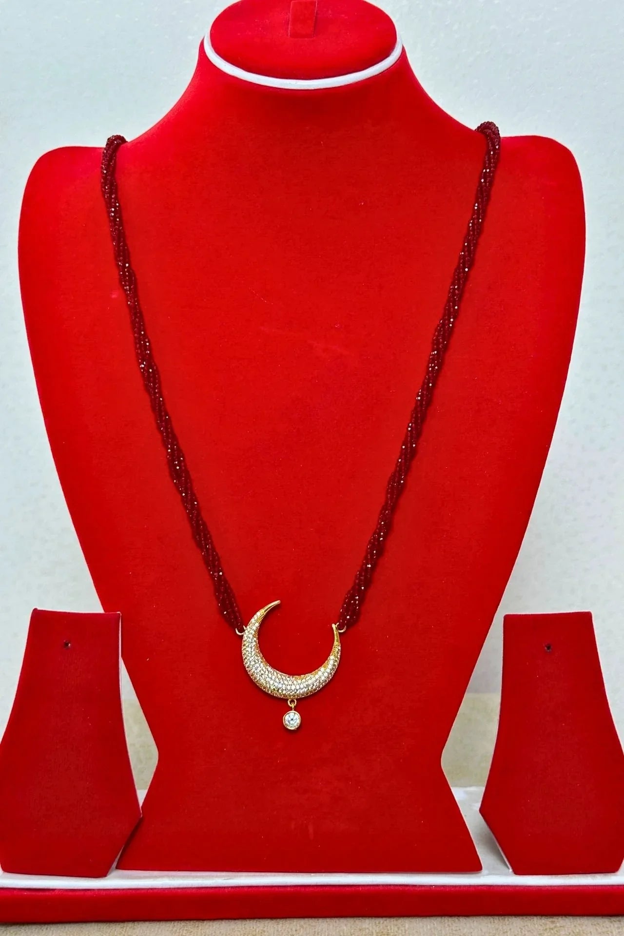 Gold-Plated Crescent Moon Pendant Necklace with Maroon Beads