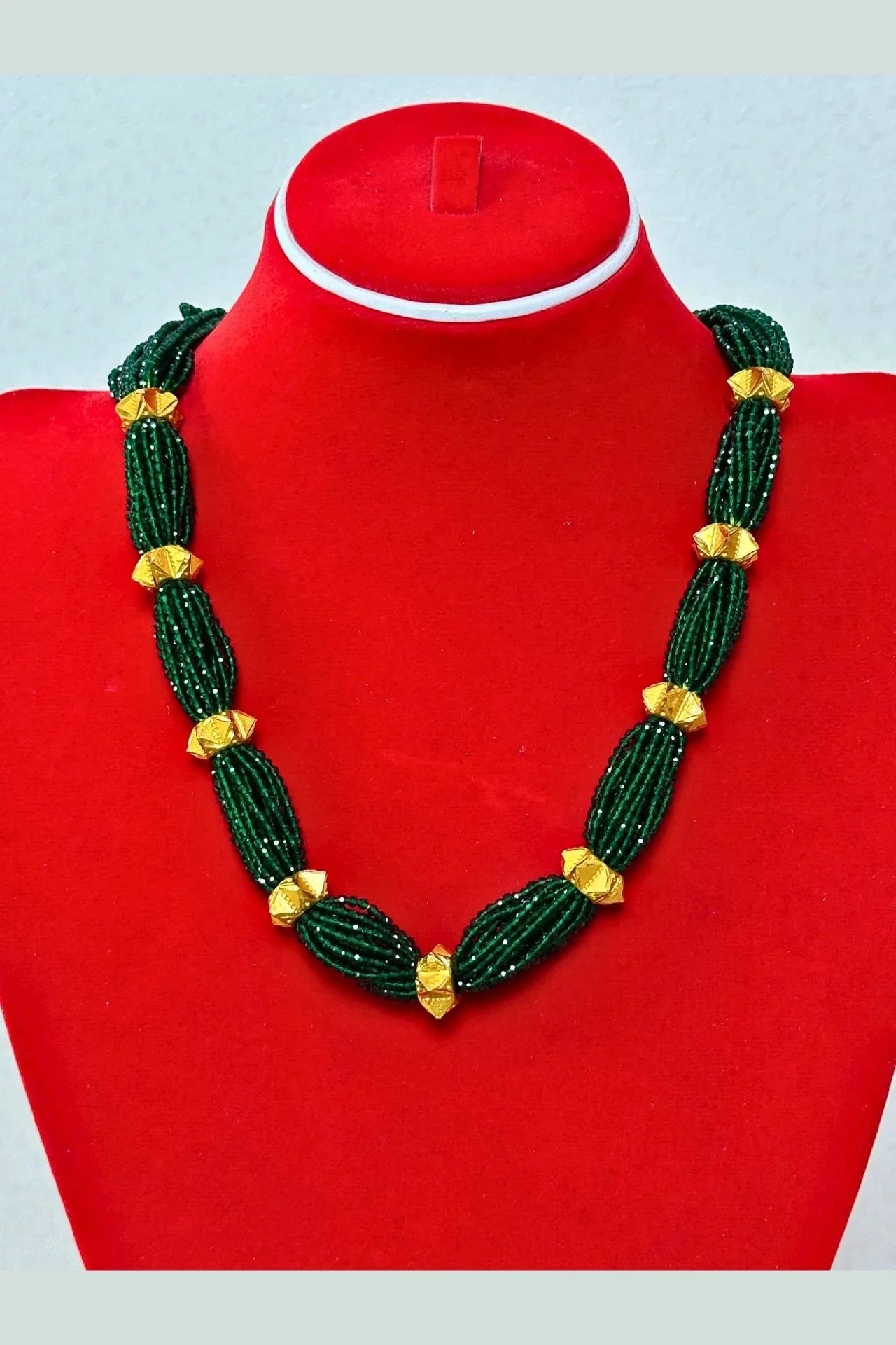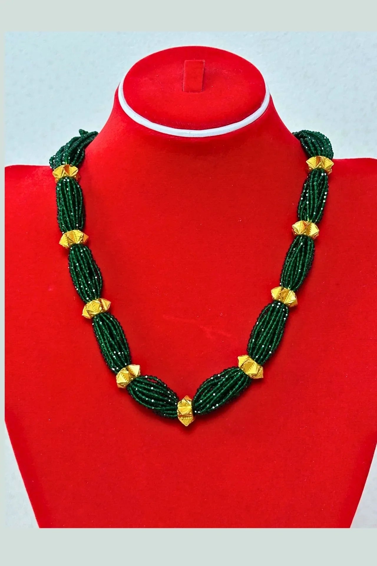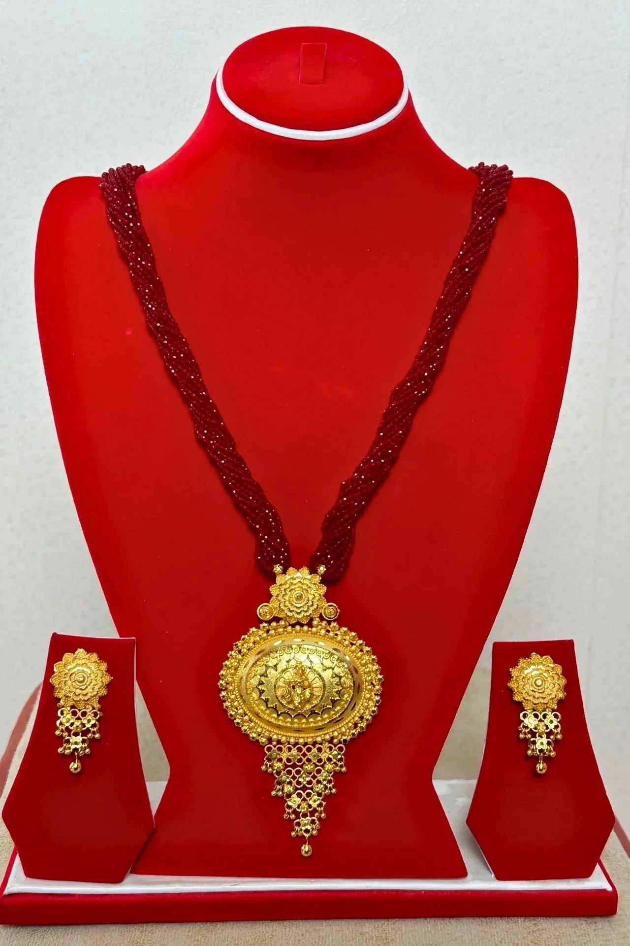 Traditional Maroon Beaded Necklace Set with Gold Pendant