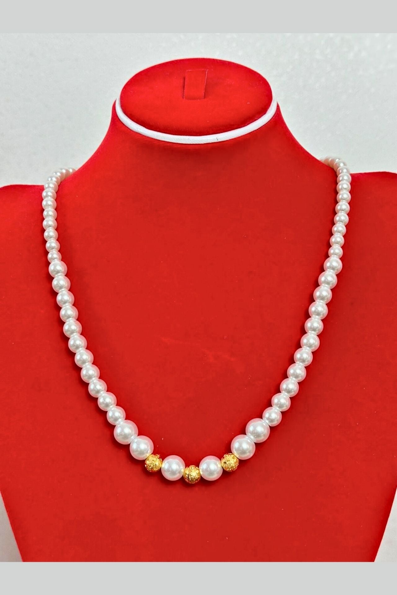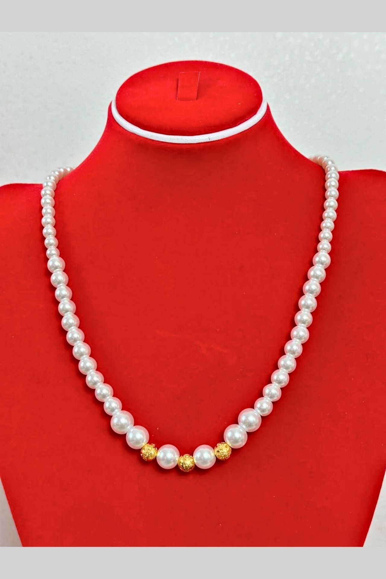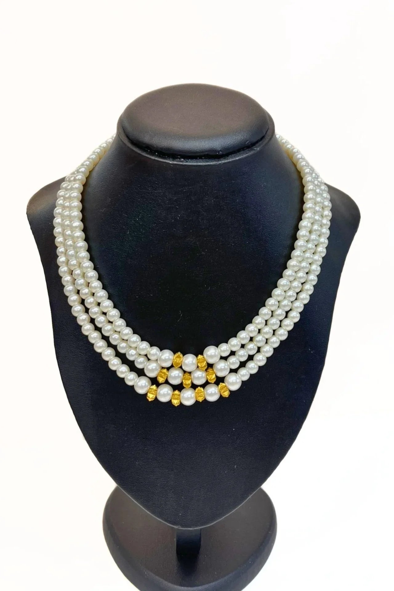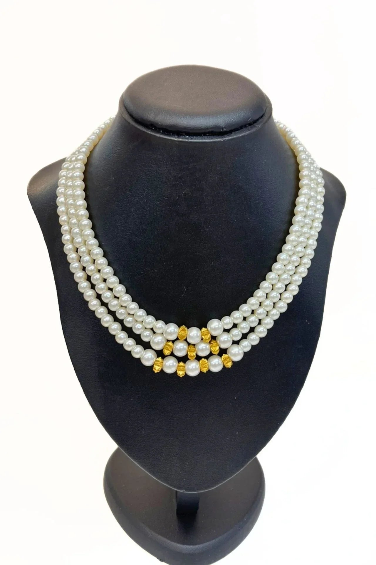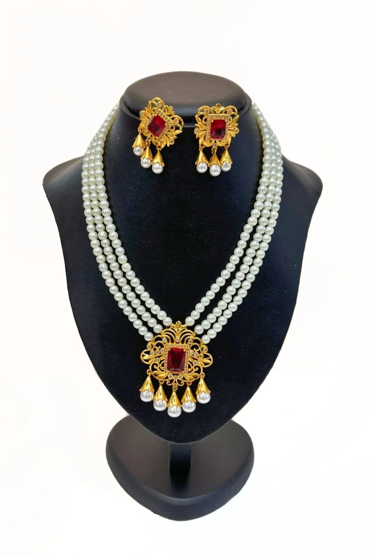 Regal Pearl Necklace Set with Ruby & Gold Detailing
