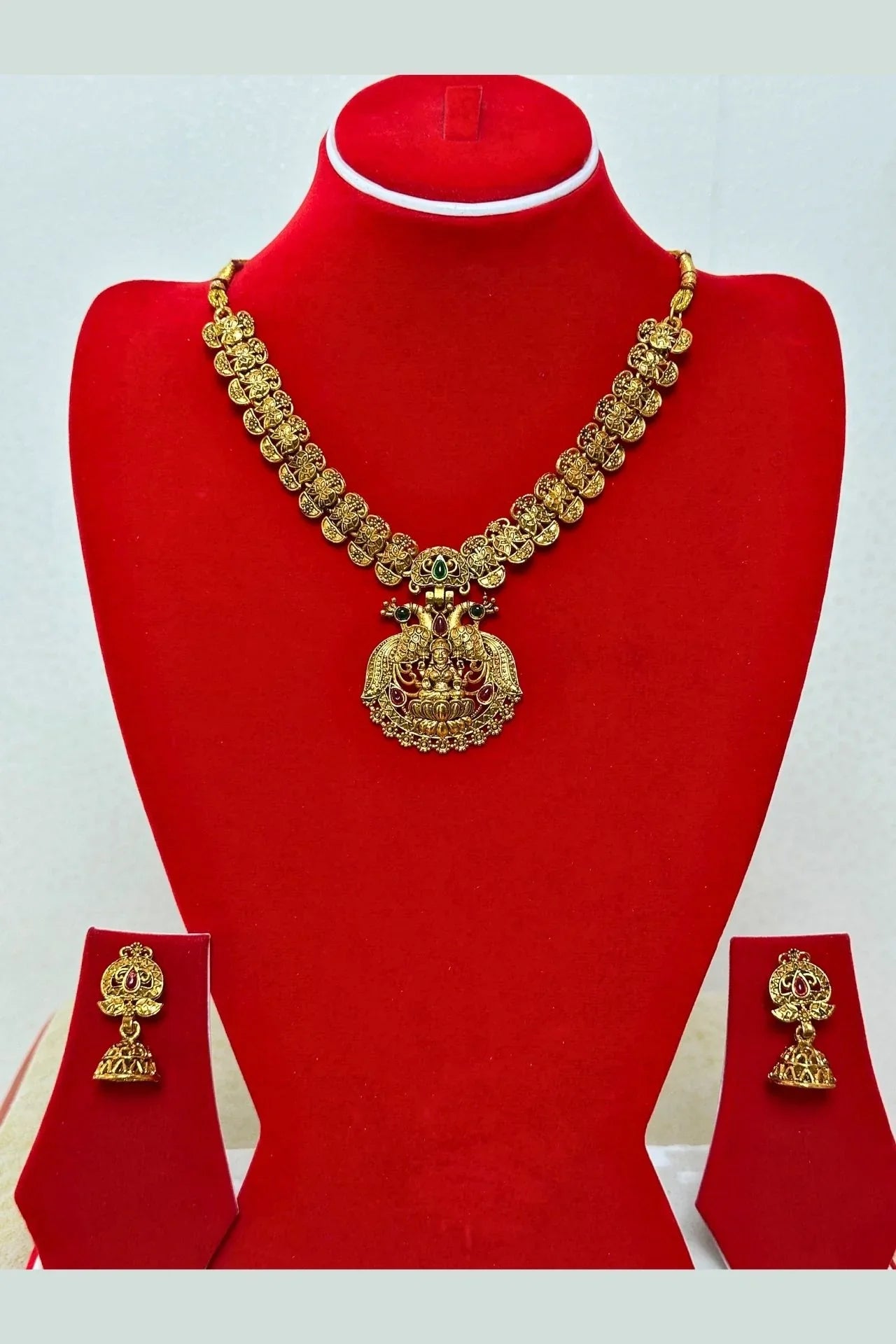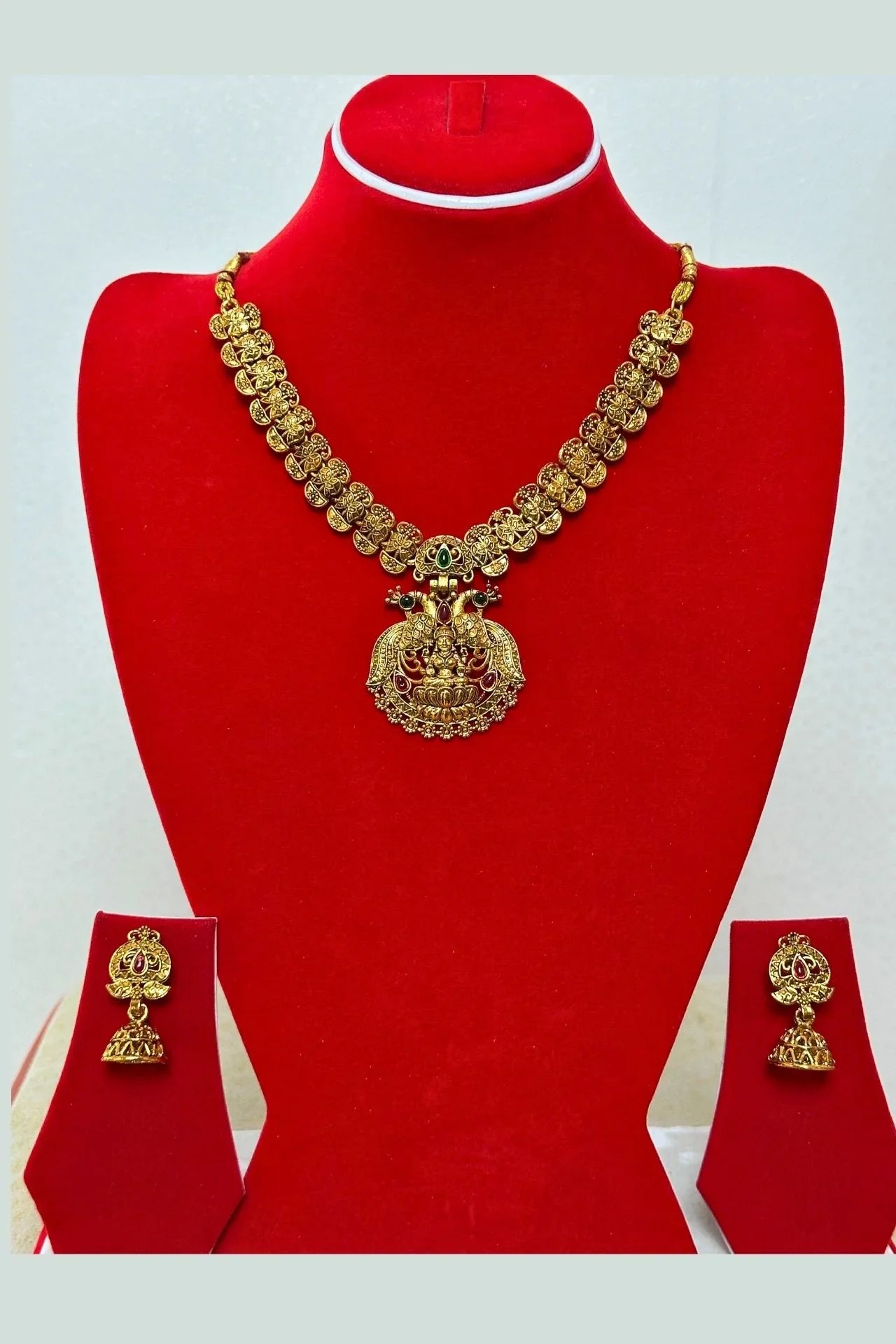 Necklace Set Lakshmi Motif Gold Plated Temple with matching Jhumka