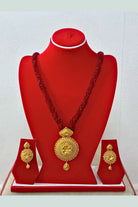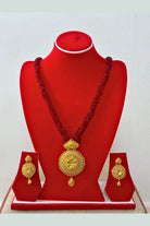 Traditional Maroon Beaded Necklace Set with Gold Pendant