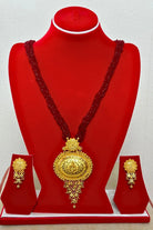 Gold-Plated Necklace & Earring Set with Maroon Beads