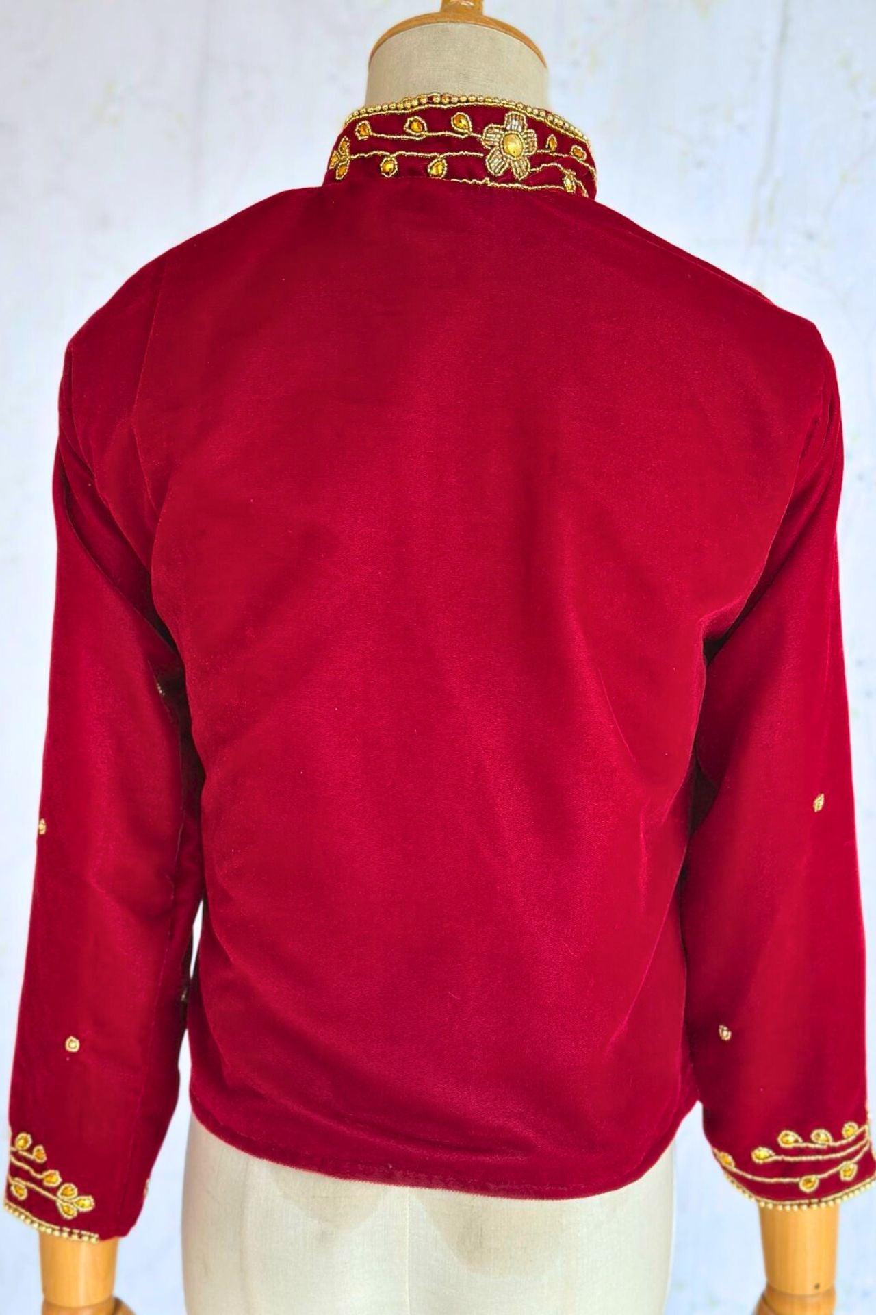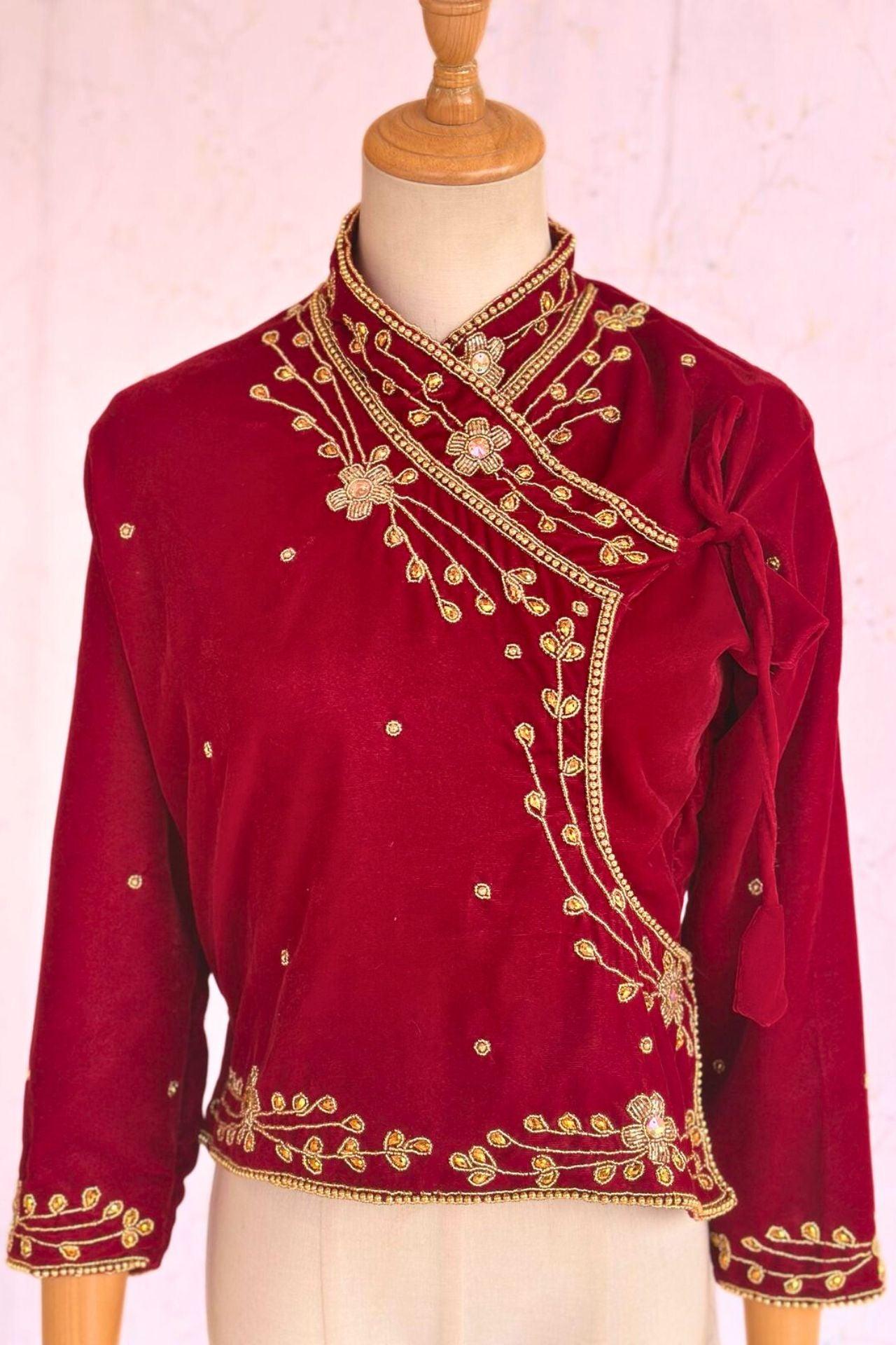 Maroon Velvet Embroidery Blouse
