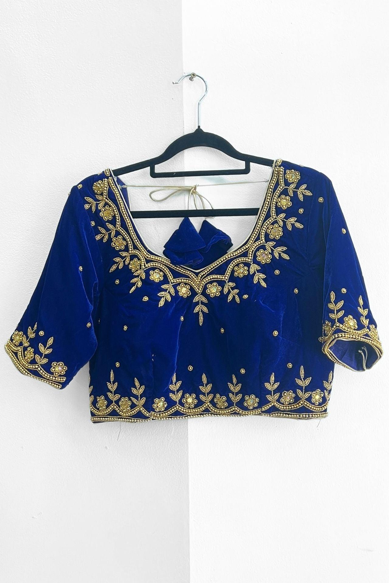 RoyalBlue Velvet Embroidery Blouse