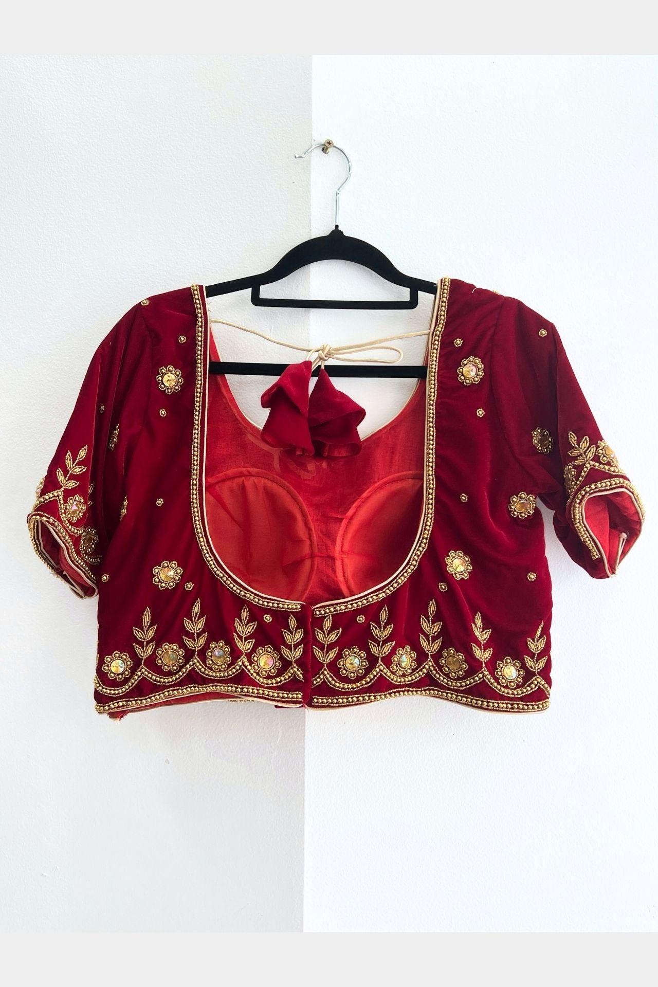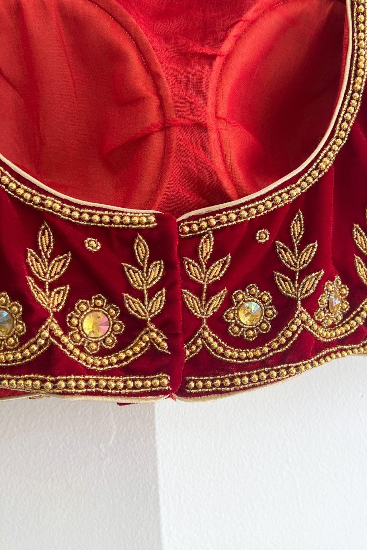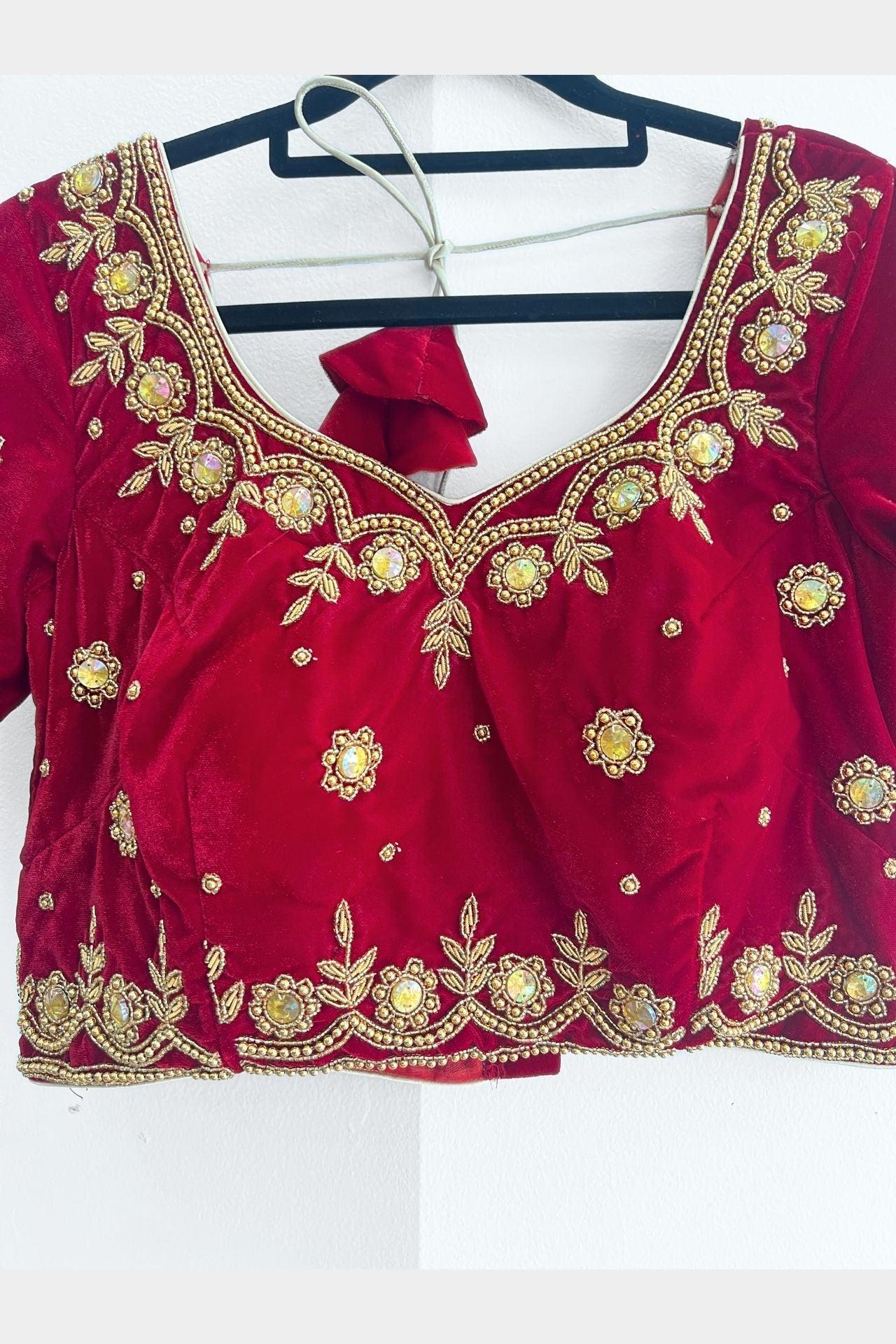 Maroon Floral Embroidered Velvet Choli