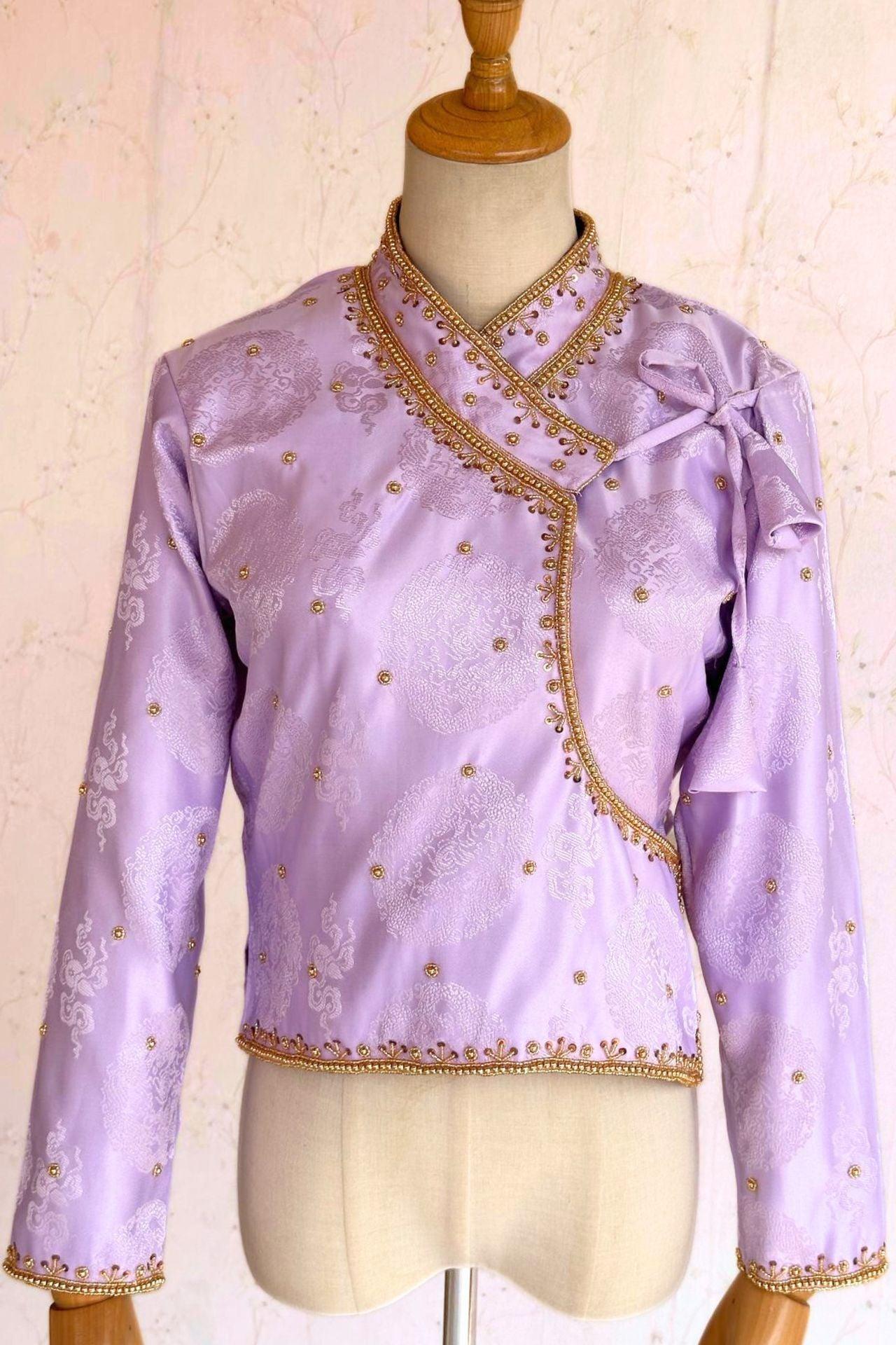 Lavender Golden Border Embroidered Kuchin Choli