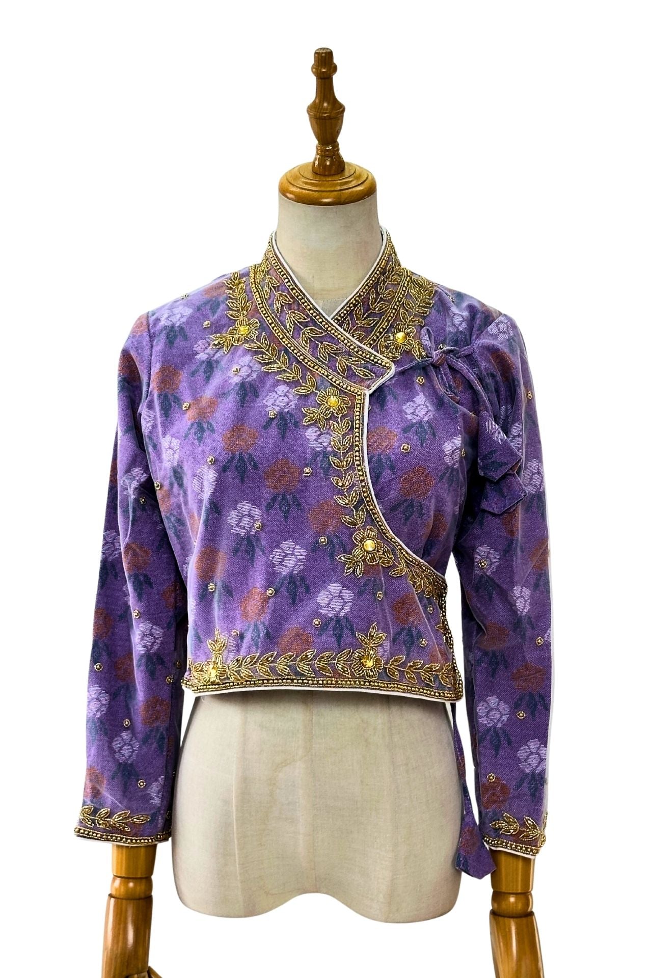 Purple Embroidered Laligurs printed Dhaka Choli