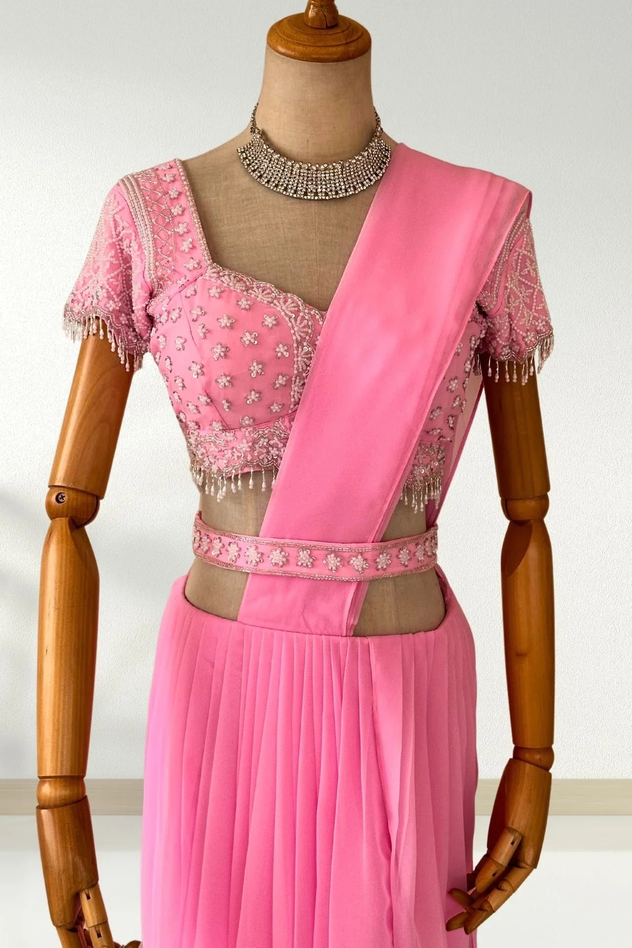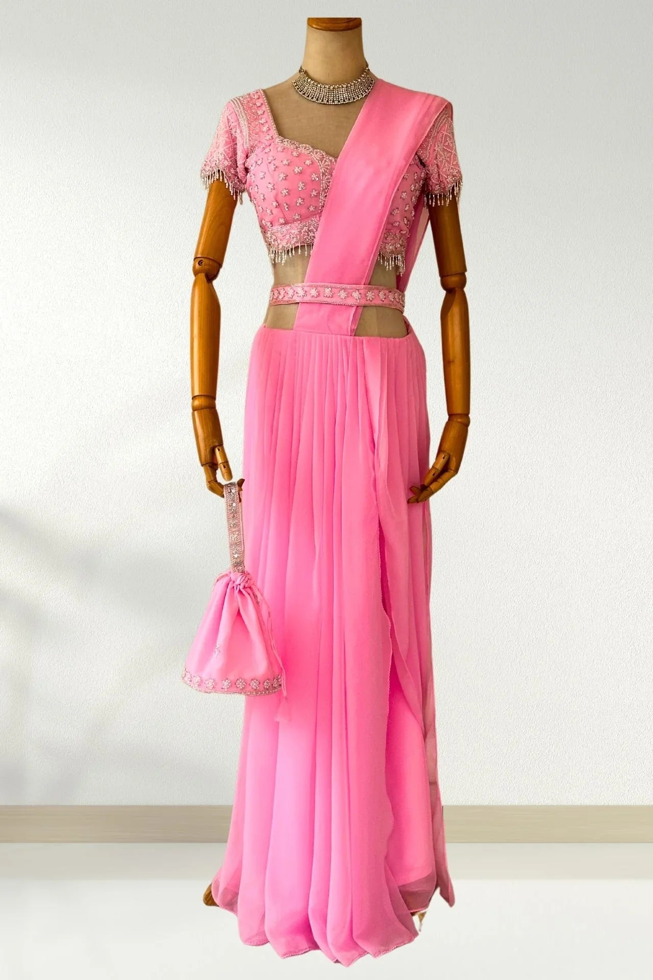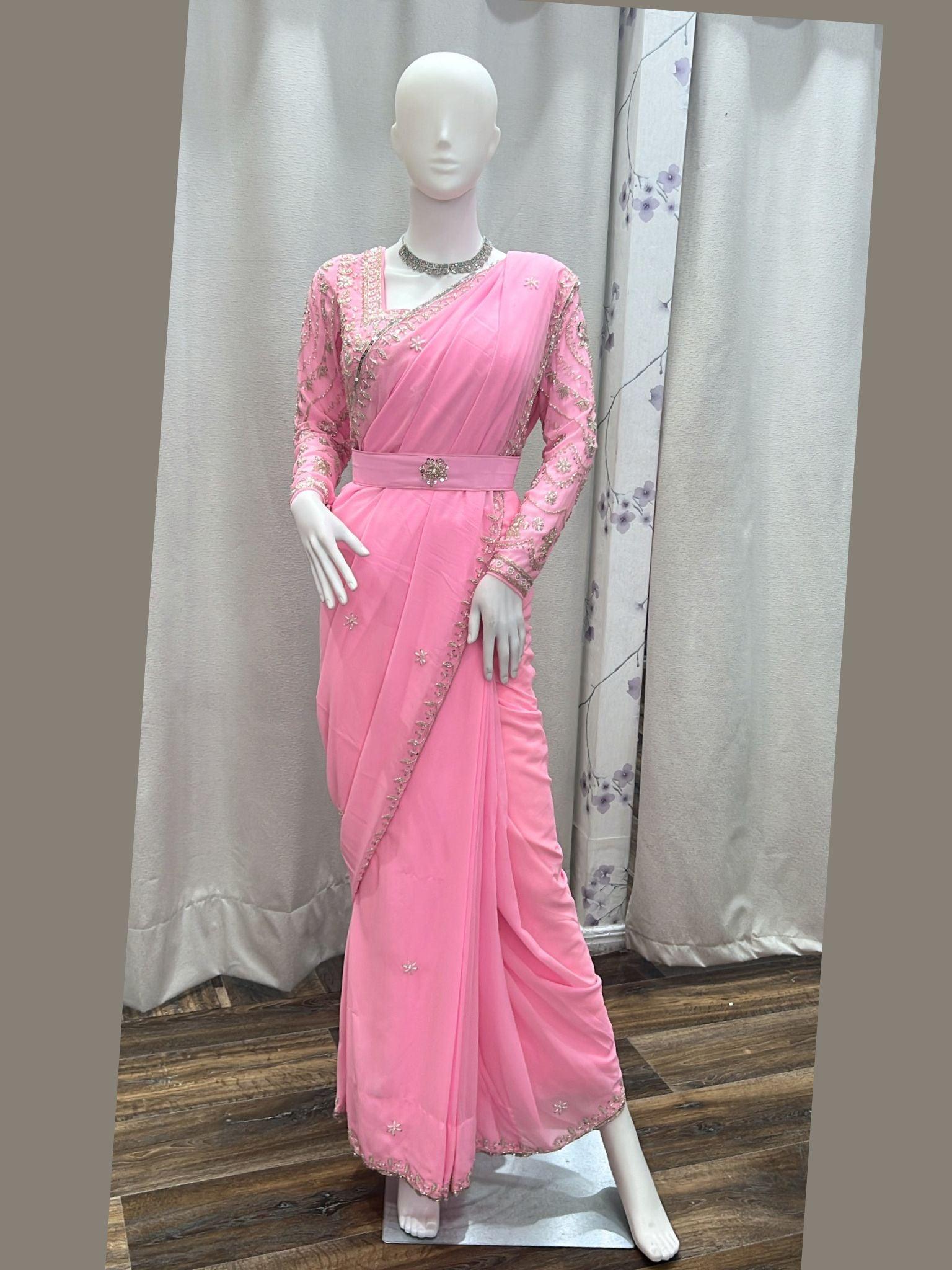 Pink Hand Embroidery ready to wear Georgette Saree
