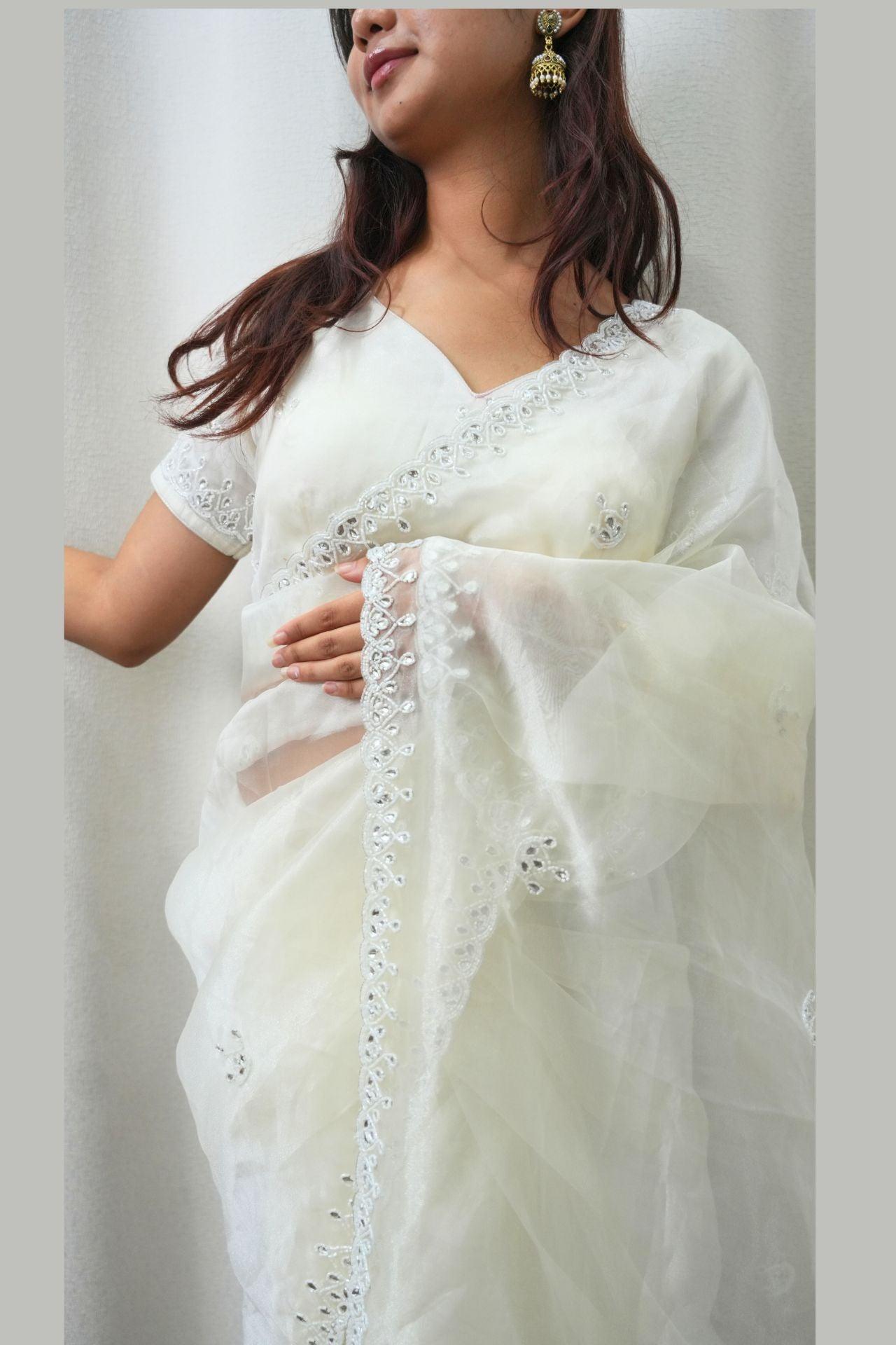Embroidered Chikankari work Saree