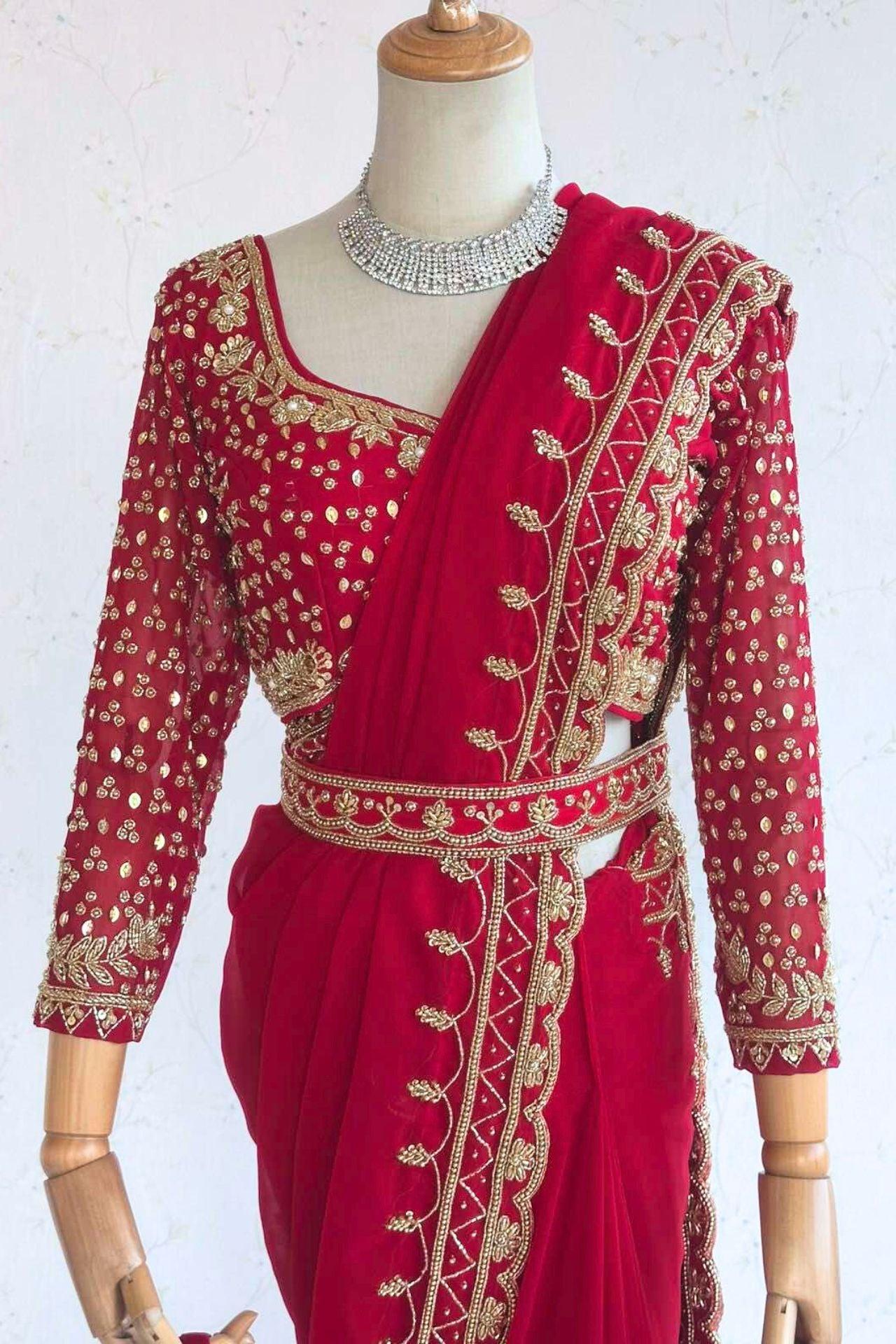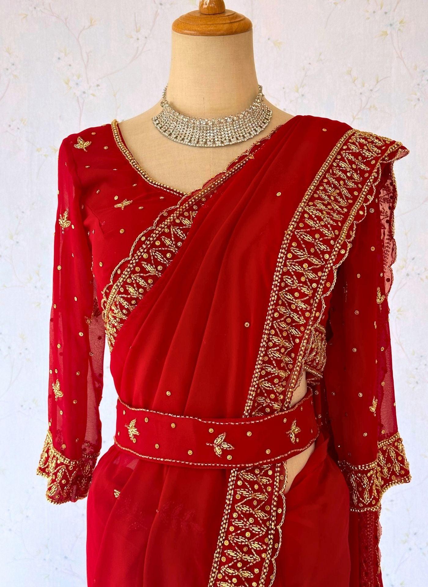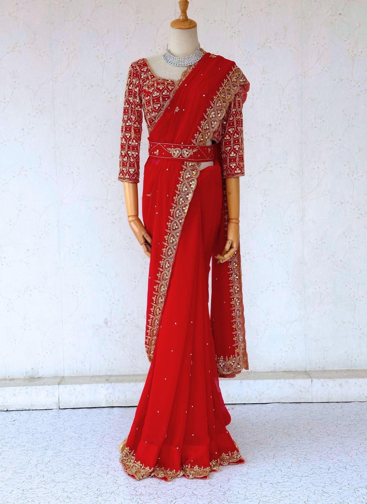 Red Handwork Georgette Saree