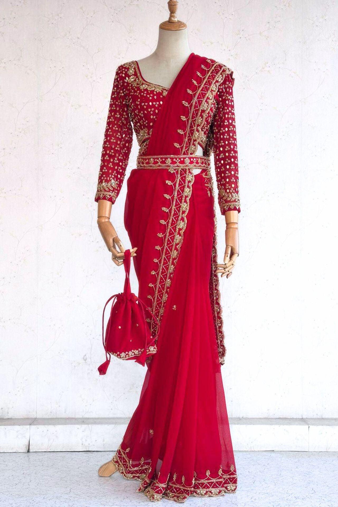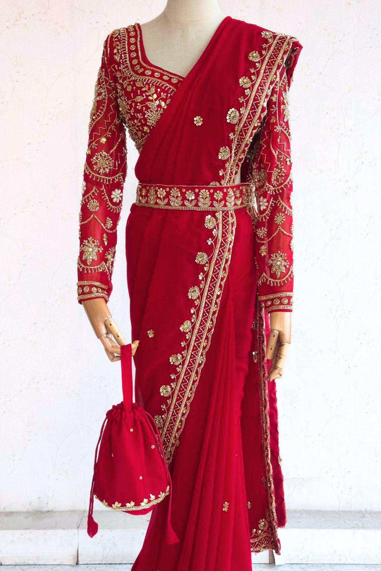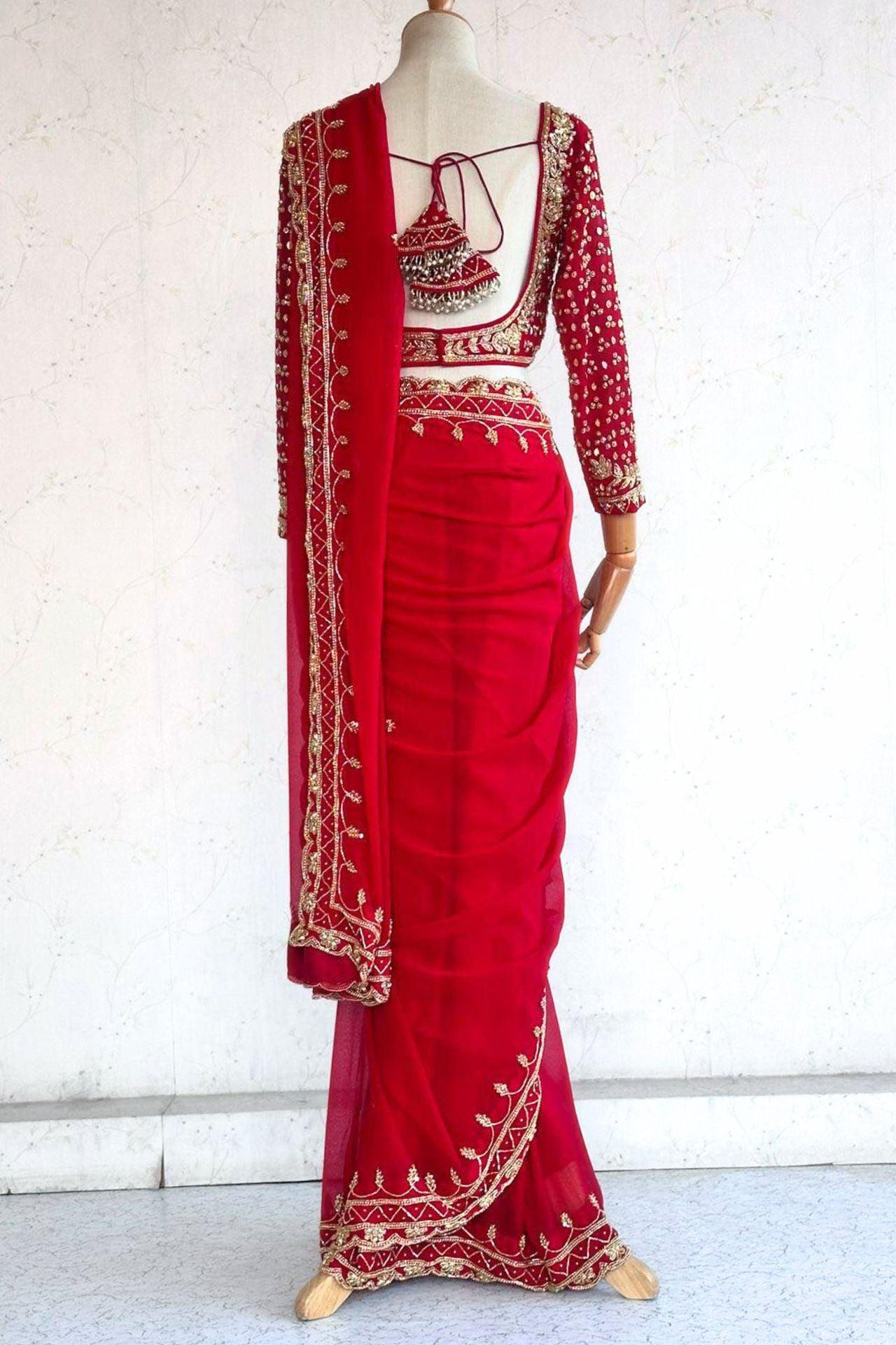 Red Handwork Georgette Saree