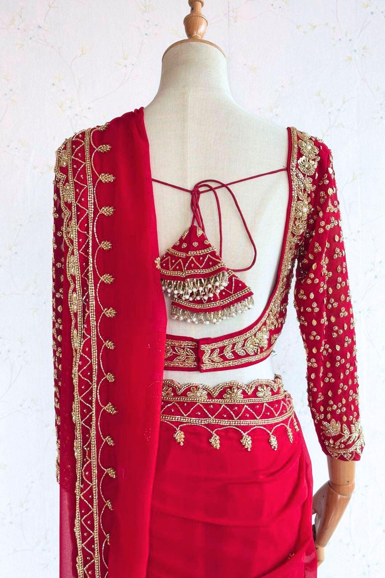 Bridal Golden Zari Handwork Red Georgette Saree