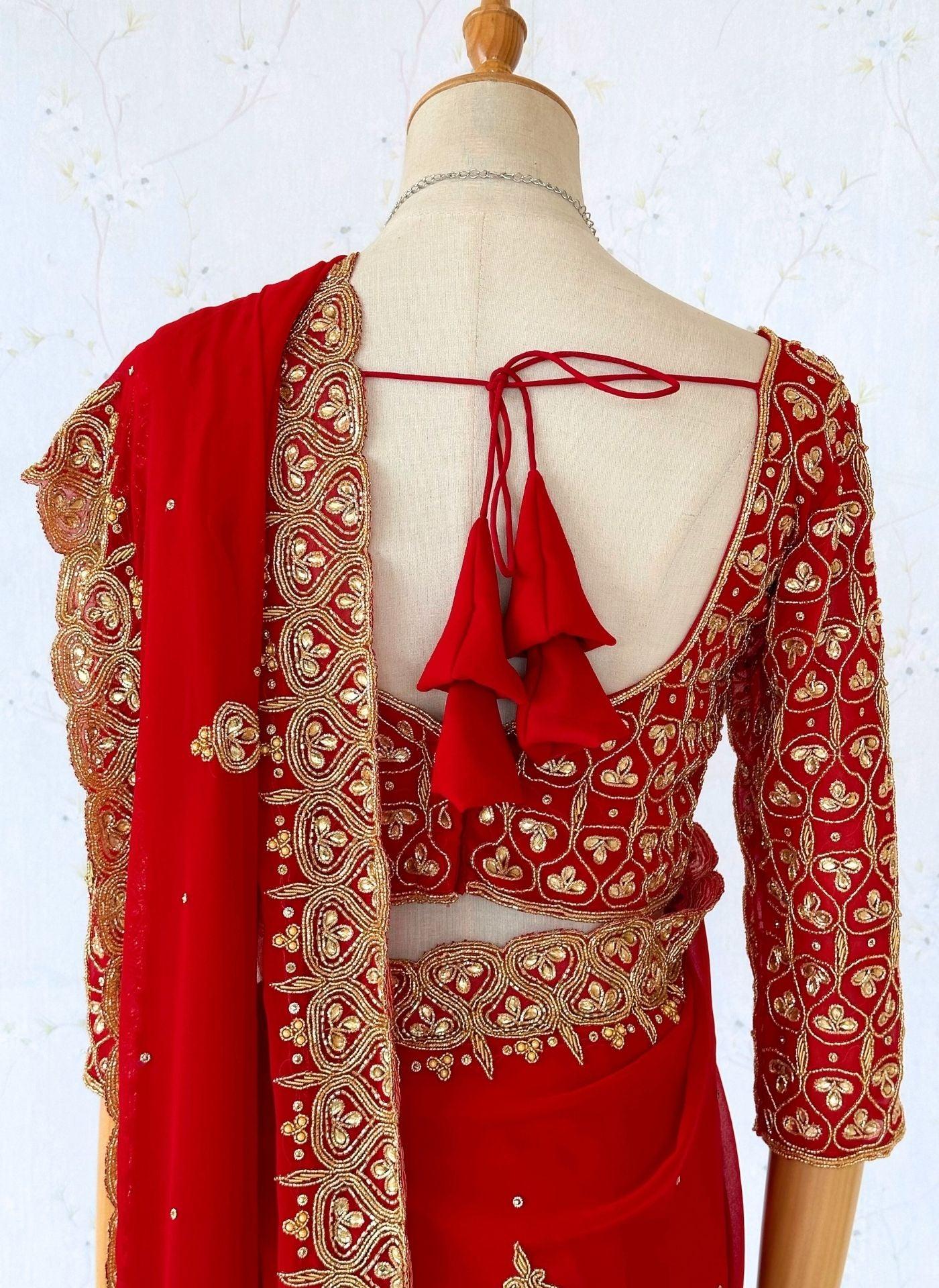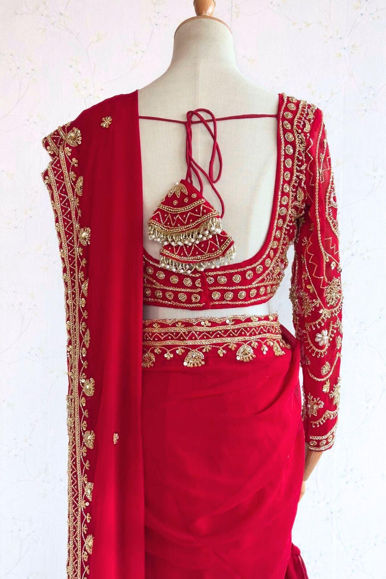 Heavy Red Bridal Hand Embroidered Saree Set