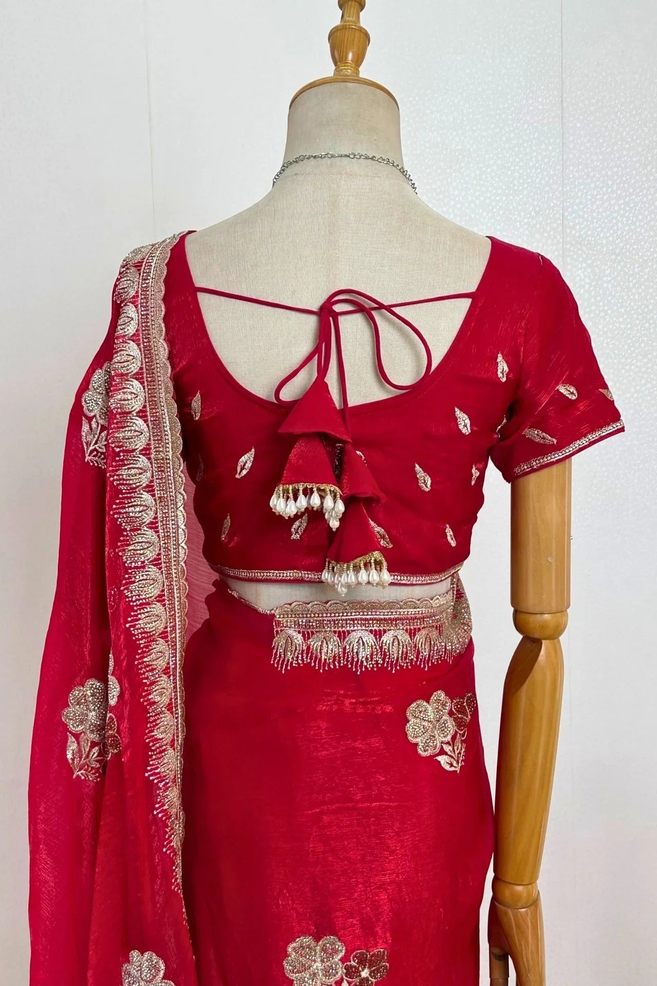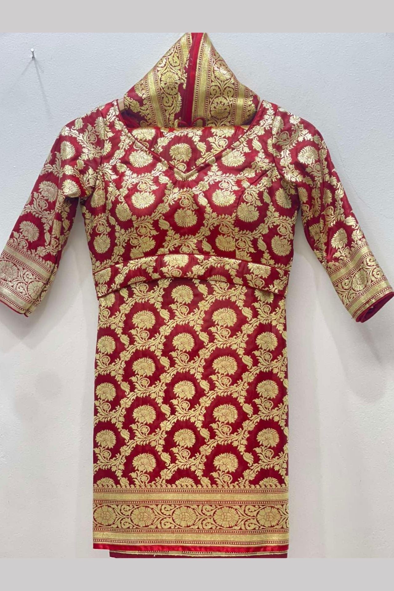 Red bridal Banarasi saree set
