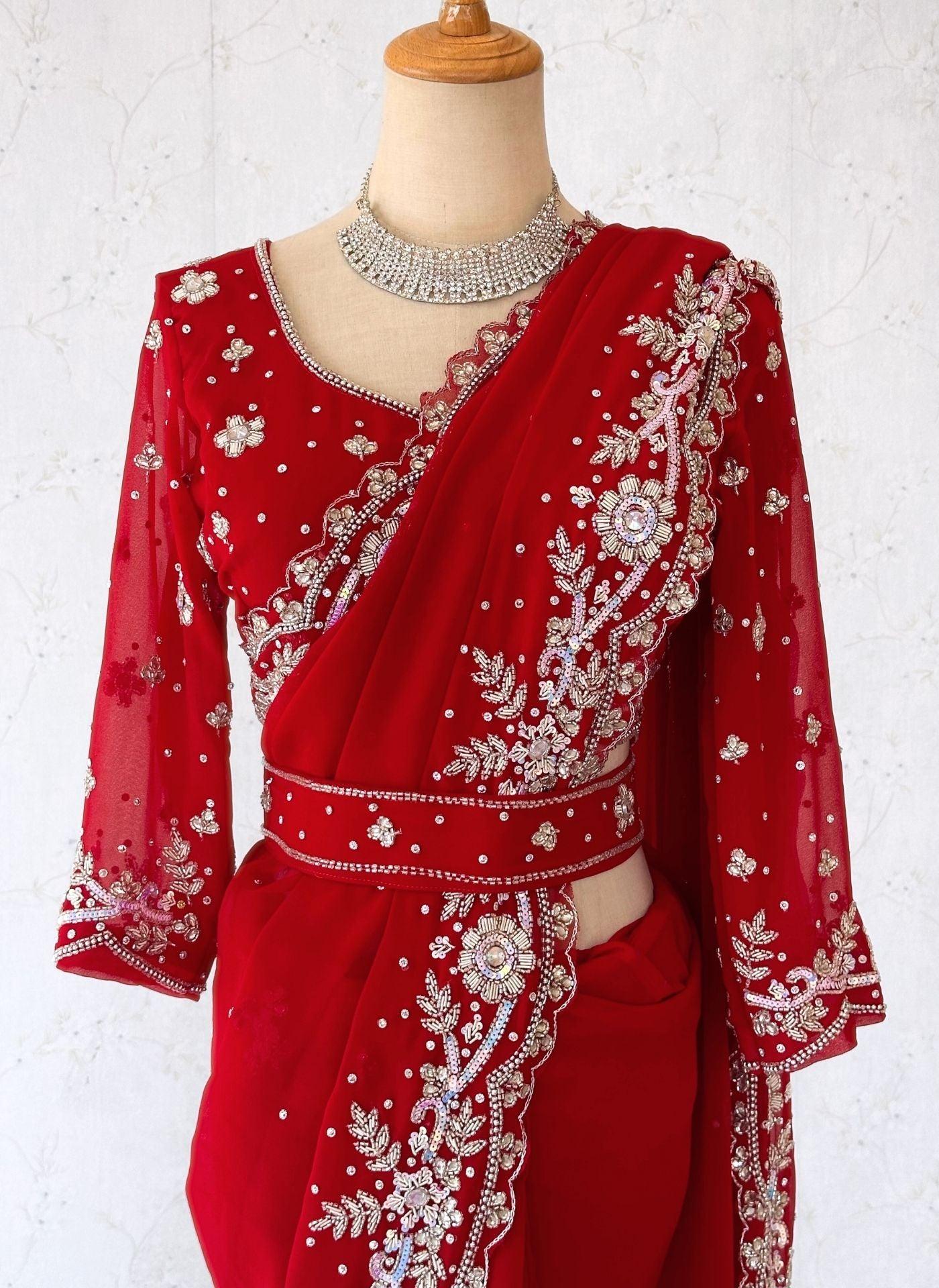 Georgette Saree Set In Red with Sworoski Crystal