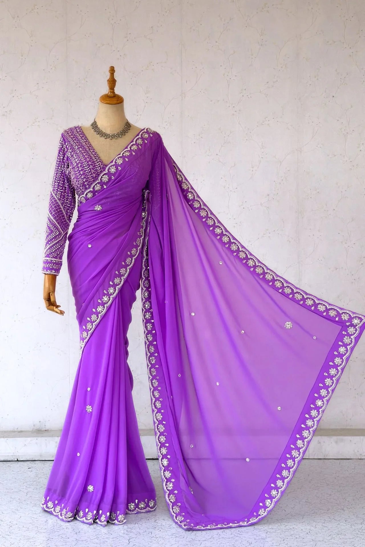Lavender Sequence Embroidered Georgette Saree