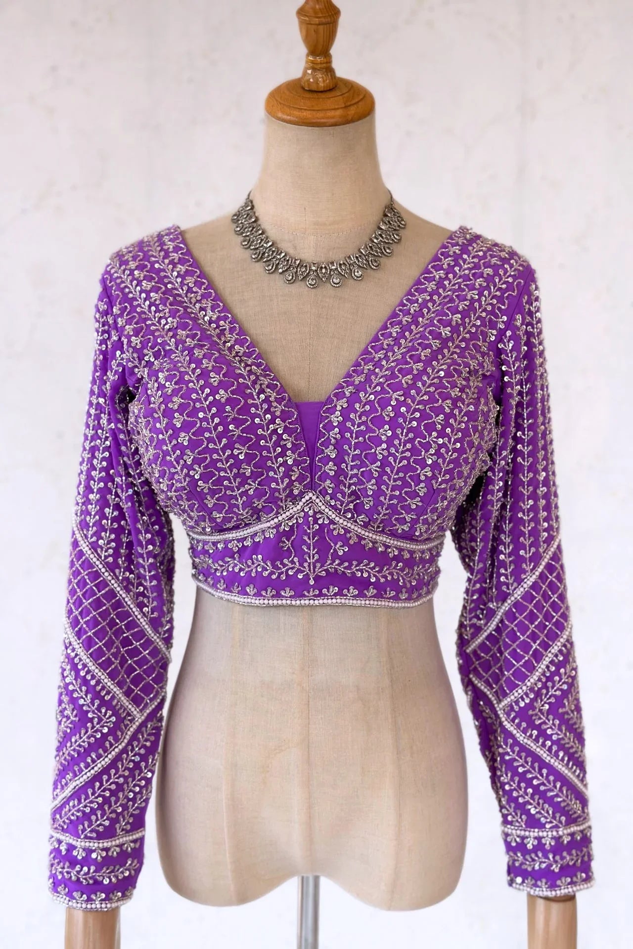 - 1- handwork on long sleeves with stitched blouse