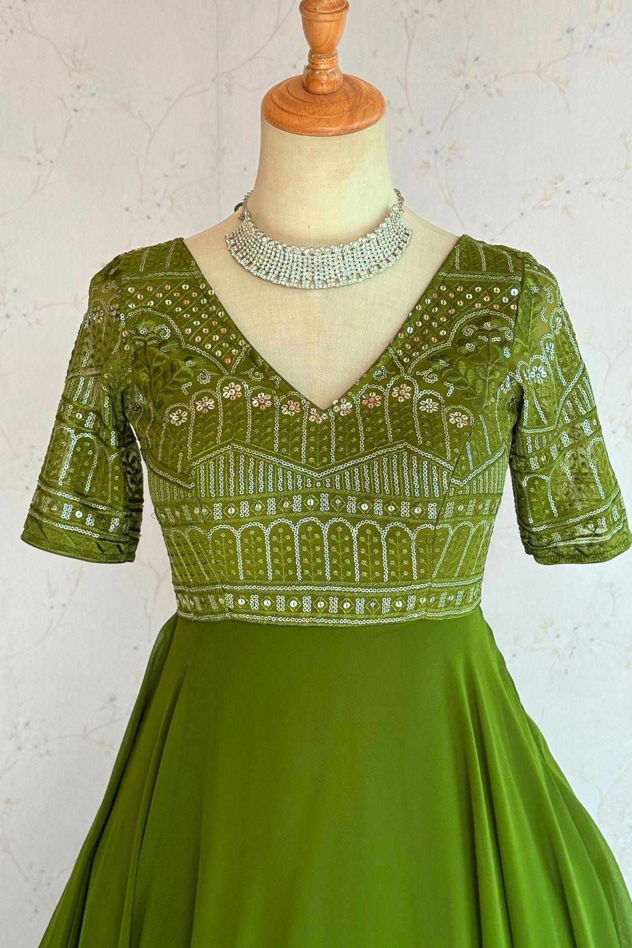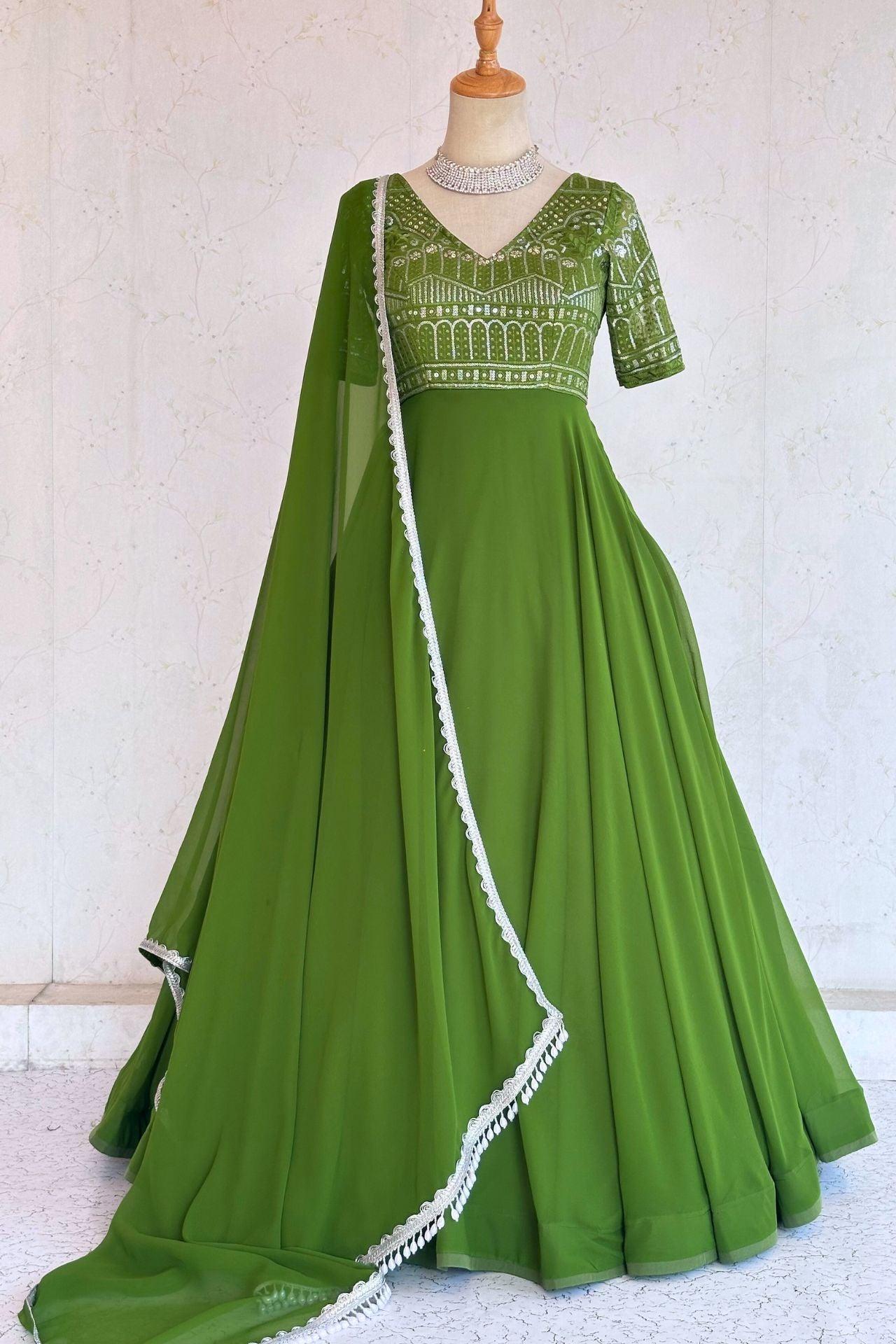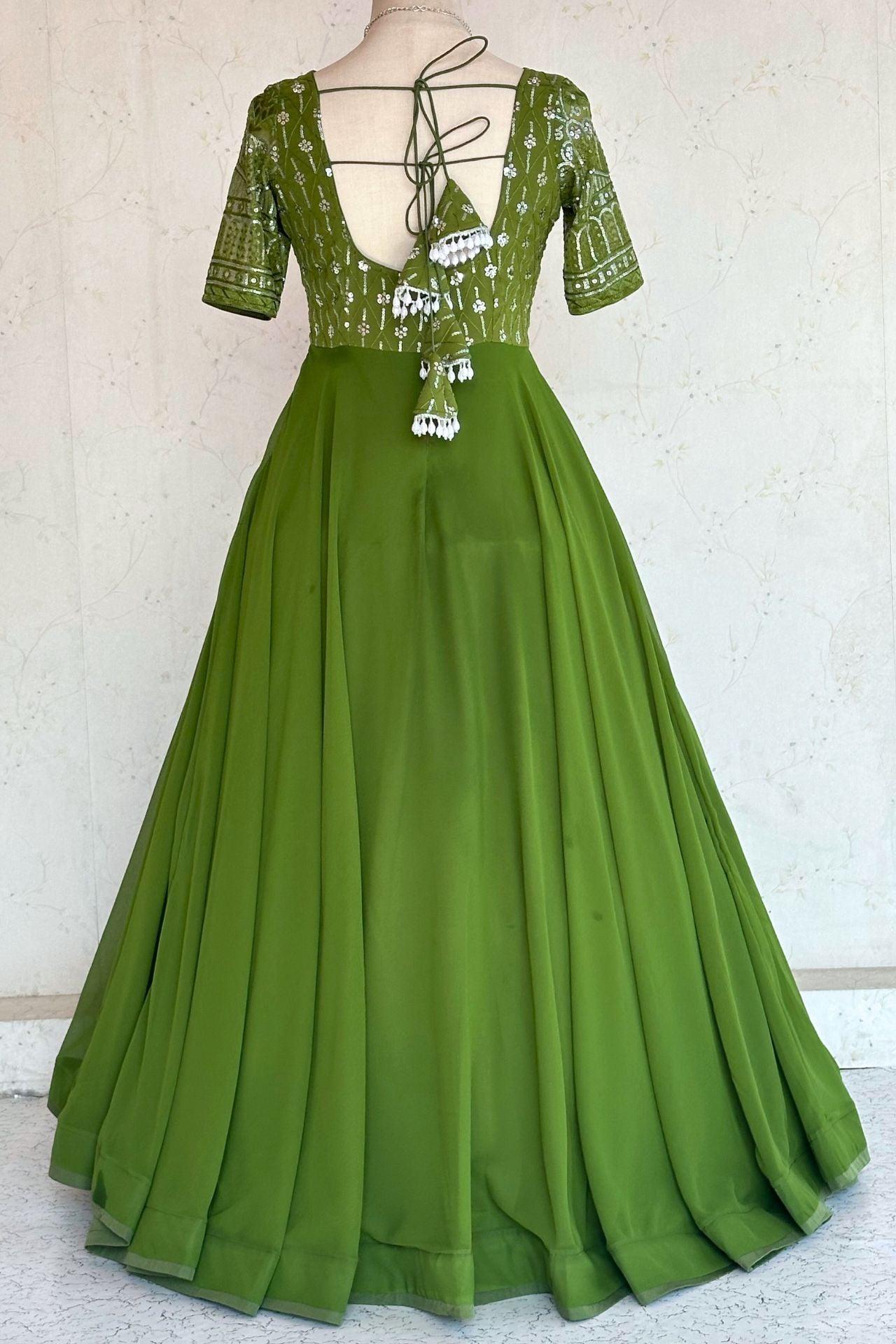 ParrotGreen Sequence Work Anarkali Gown