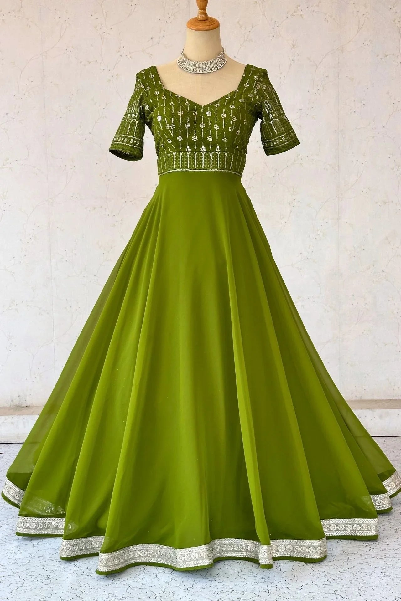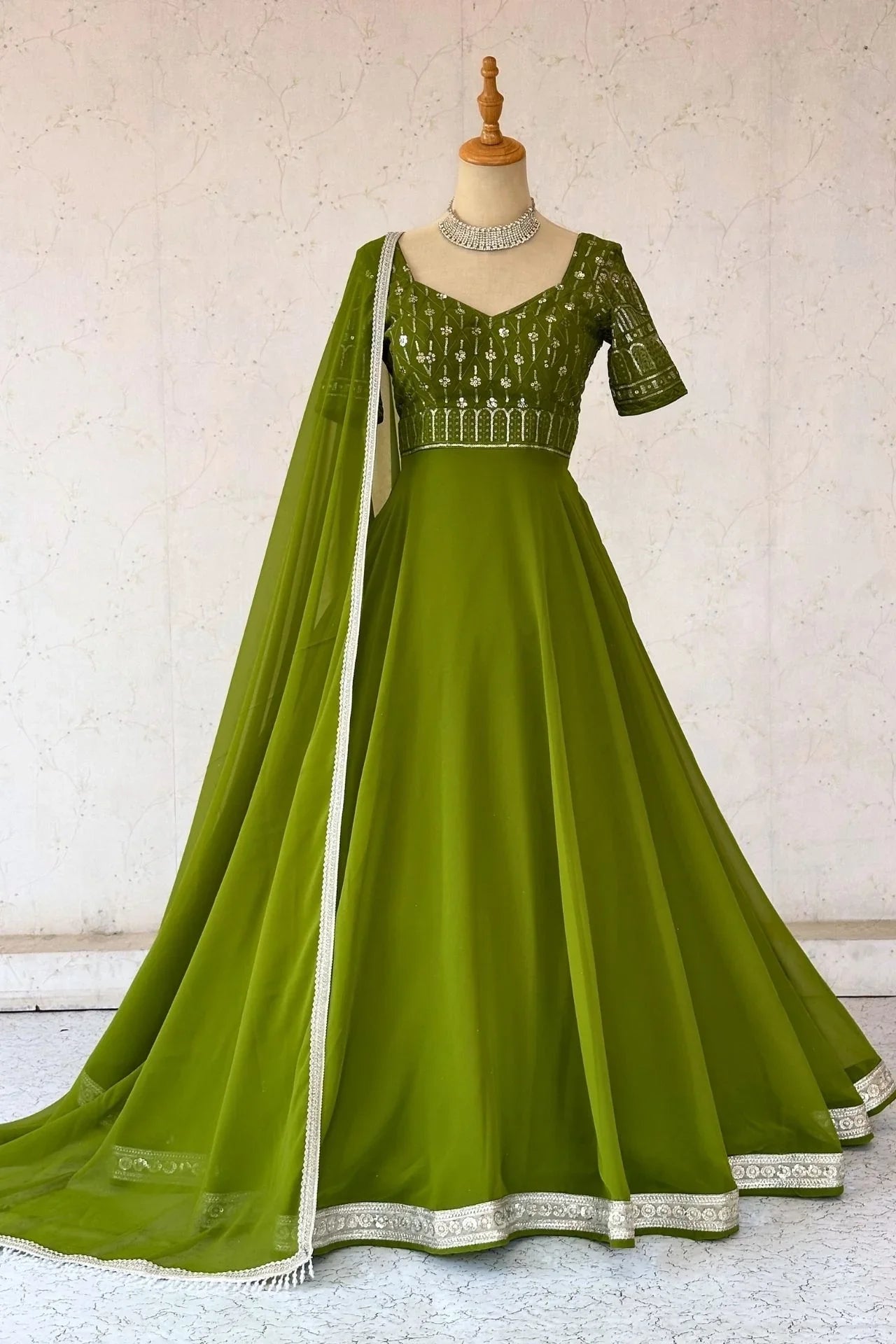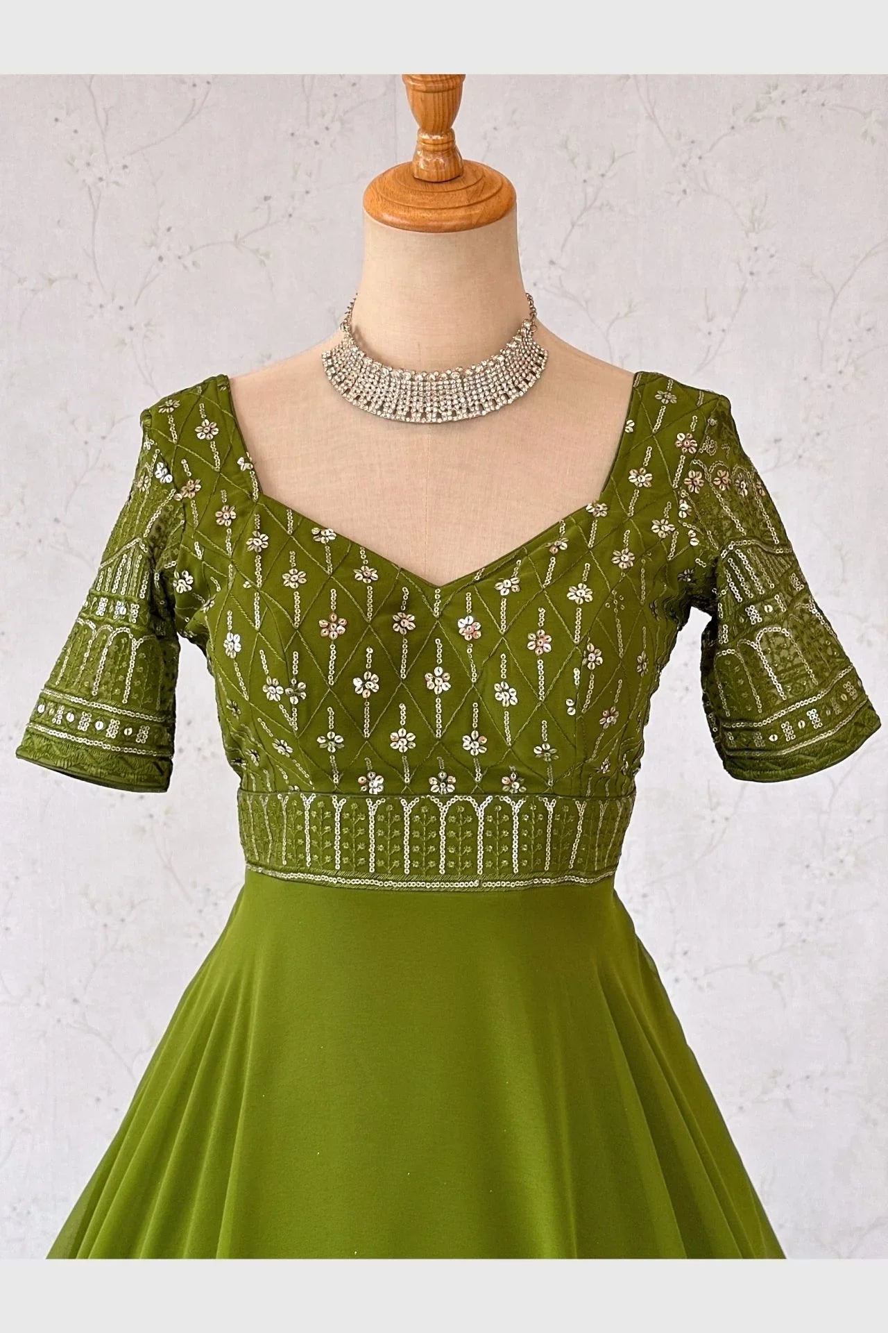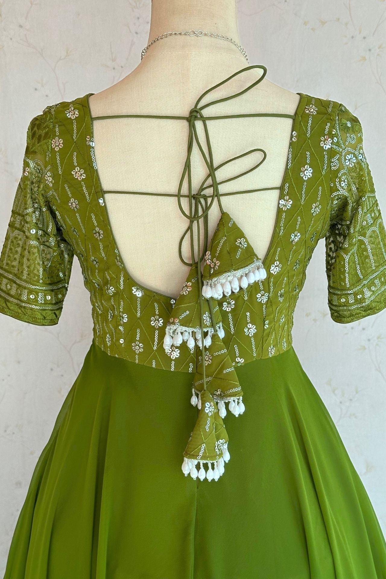 ParrotGreen Sequence Work Anarkali Gown