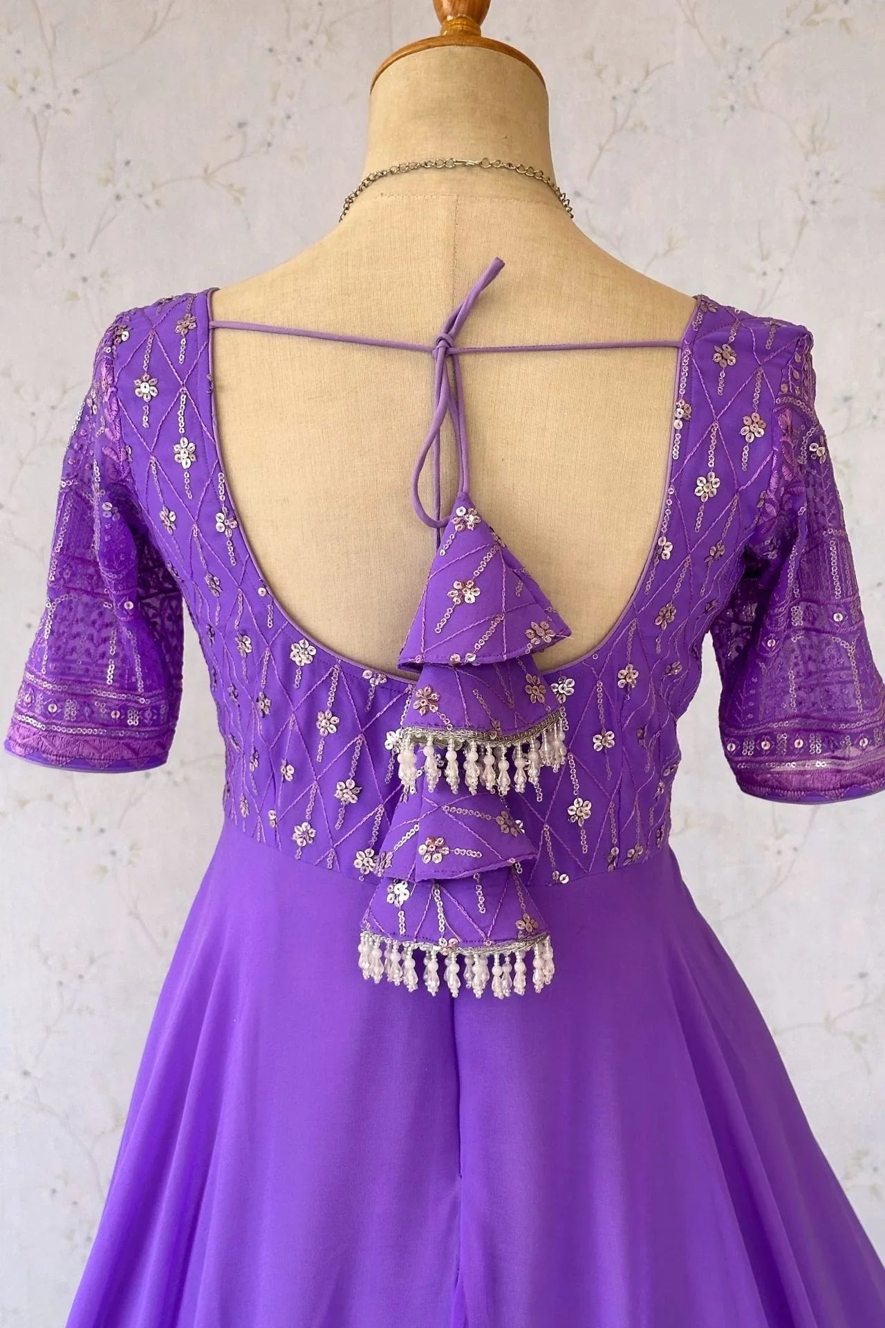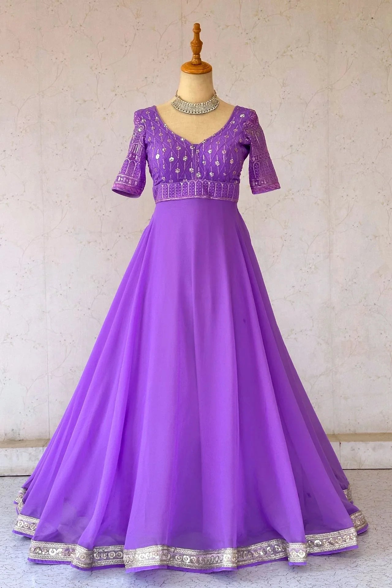 Lavender Sequence Work Anarkali Gown