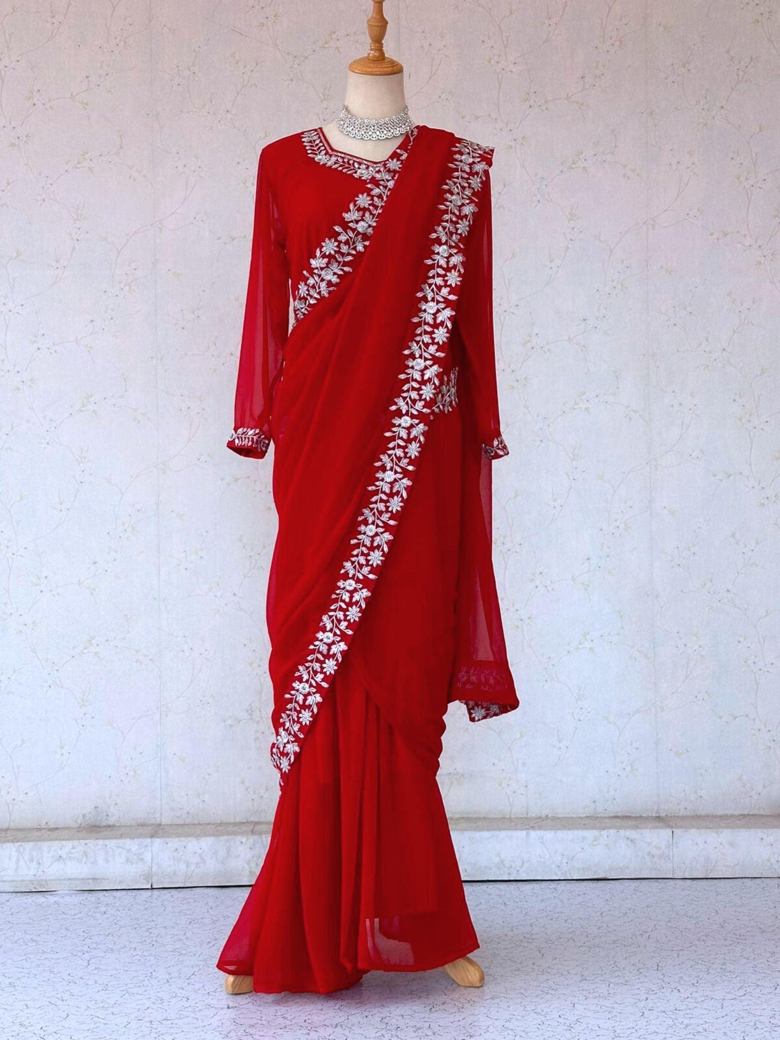 Gown Saree In Red