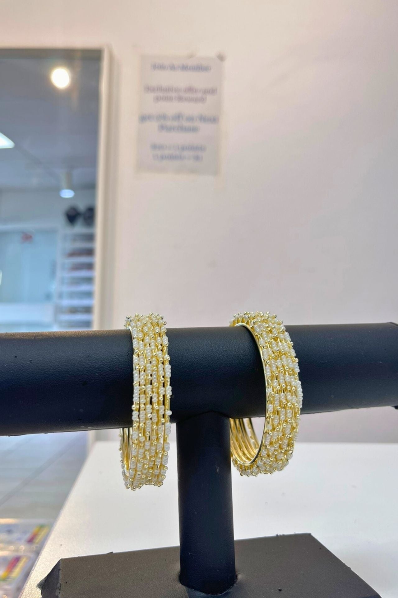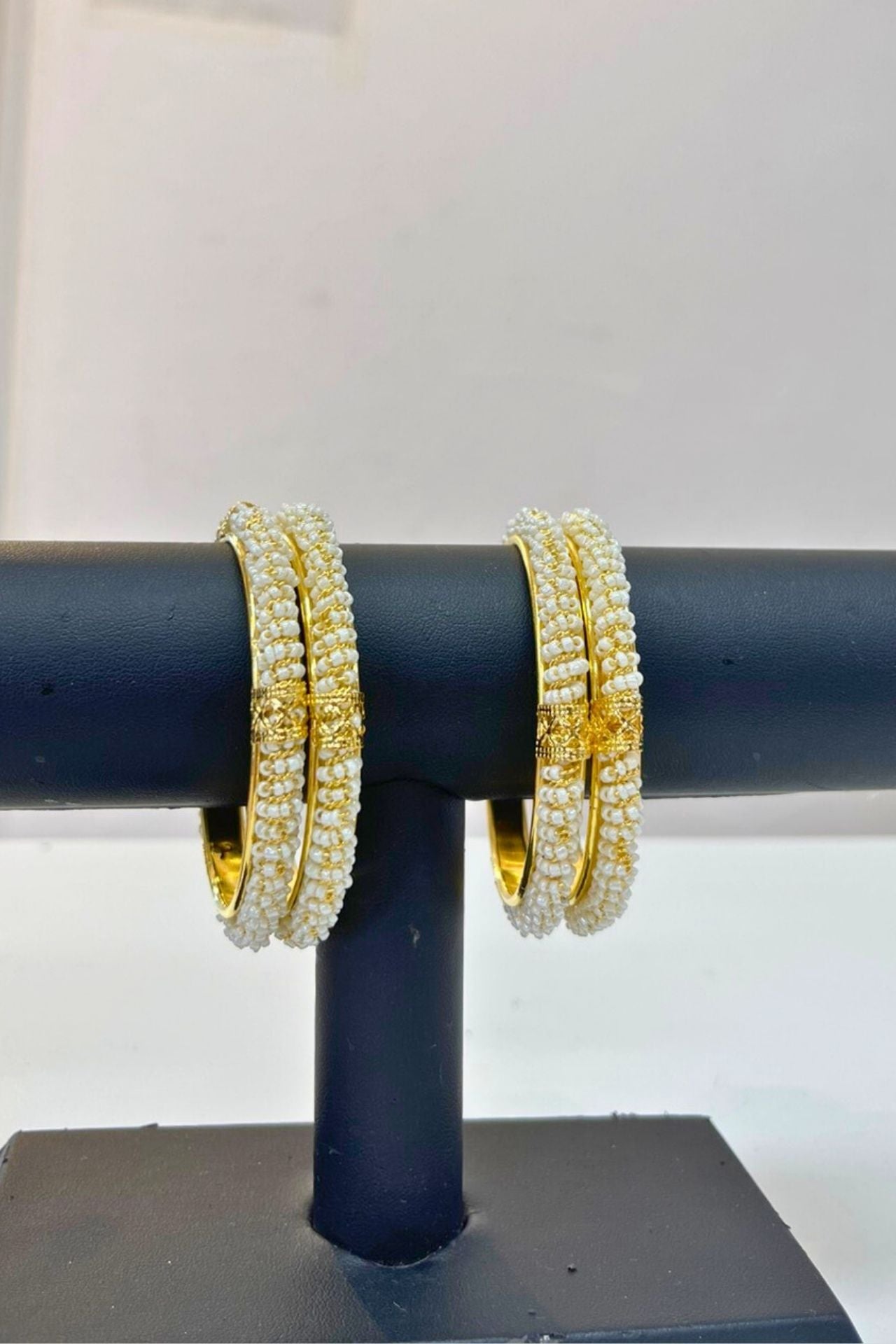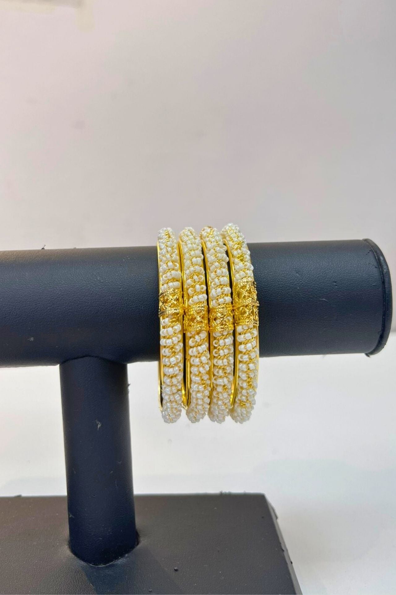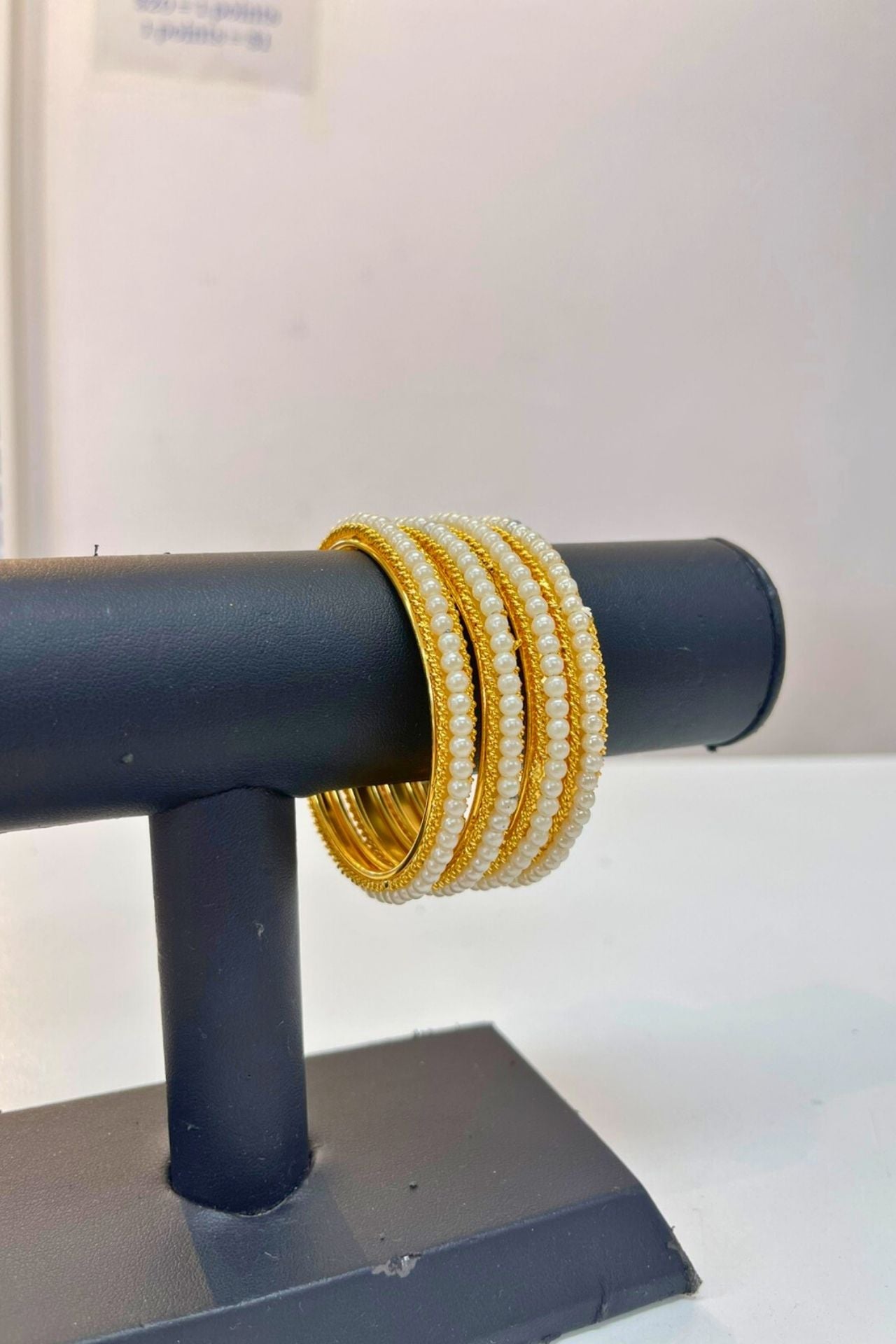 Gold Tone Bangle Set With Pearl Elephant Motif