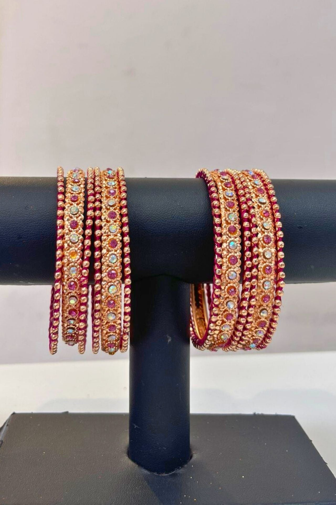 Bangle Set With Gold Plated Pink Stone